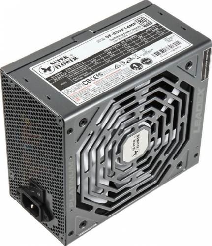 Super Flower Leadex Platinum 850W Black Modular PSU, certificata 80 PLUS Platinum, eficienta 92%, cabluri full modulare pentru un wire management mai bun, single rail (70.8A), ventilator silentios de 135mm (Fluid Dynamic Bearing) cu tehnologie ECO Intelligent Thermal Control System (ventilatorul nu incepe sa se roteasca pana ce temperatura interna a sursei nu atinge 55°C), condensatori japonezi (Nippon Chemi-Con), 4x 6+2pin PCIE, 10x SATA, 5x Molex, 2x 4+4pin EPS12V, protectii OVP/OCP/OPP/SCP/UVP, Active PFC, ATX 12V v2.32, SSI EPS 12V v2.92, dimensiuni (LxWxH): 65x150x86mm, certificari: cTUVus / TUV / CB / CE / FCC / C-Tick / BSMI / RoHS / CCC, greutate: 2.7kg