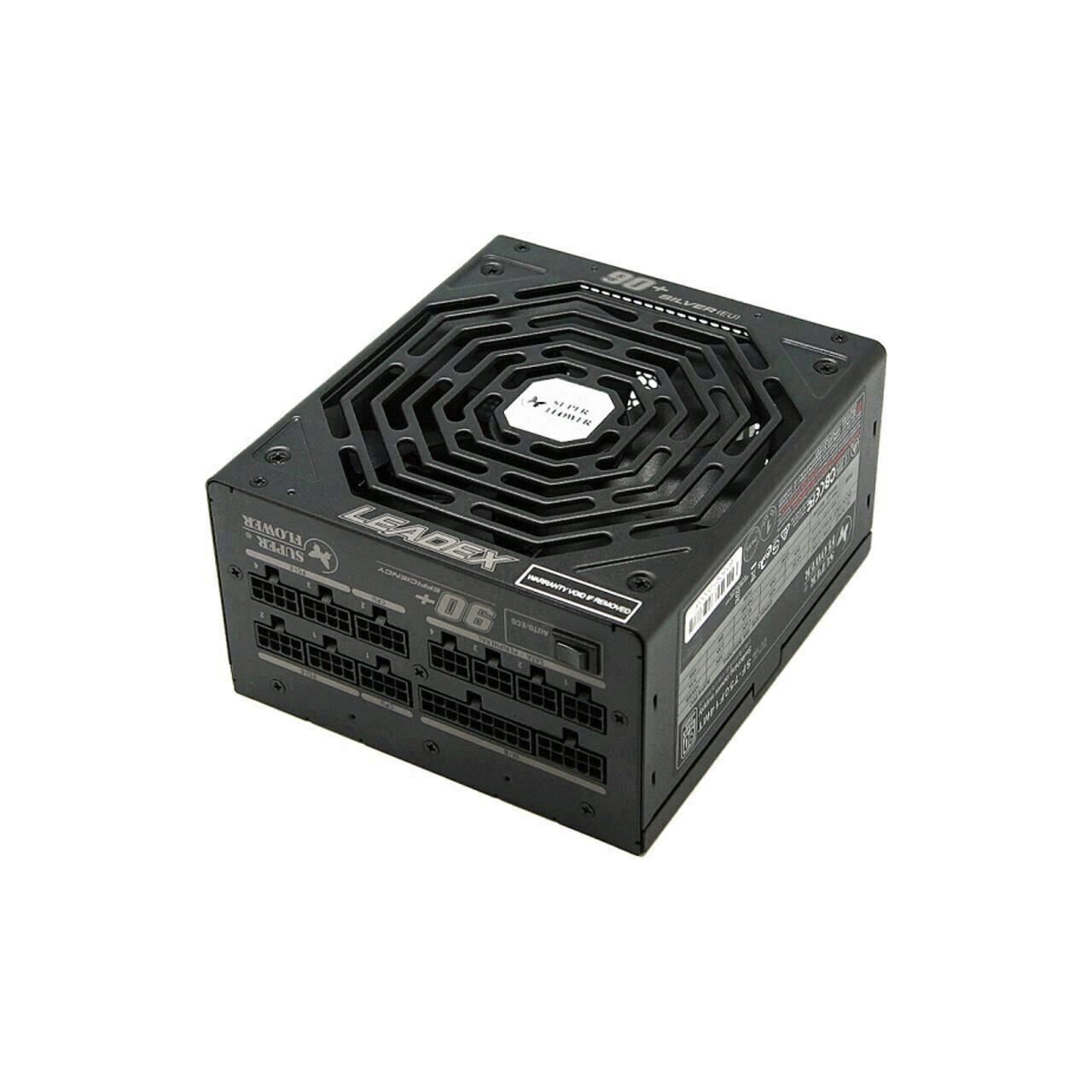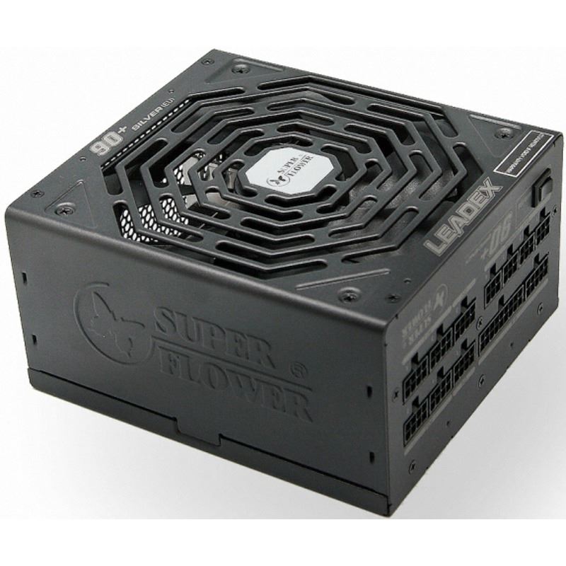 Super Flower Leadex Silver 750W Modular PSU, certificata 80 PLUS Silver, eficienta 90%, cabluri full modulare plate pentru un wire management mai bun, single rail (62.4A), ventilator silentios de 140mm (Long Life Silent Fan) cu tehnologie ECO Intelligent Thermal Control System (ventilatorul nu incepe sa se roteasca pana ce temperatura interna a sursei nu atinge 50°C), 4x 6+2pin PCIE, 9x SATA, 4x Molex, 2x 4+4pin EPS12V, protectii OVP/OCP/OPP/SCP/UVP, Active PFC, ATX 12V v2.32, EPS 12V v2.91, SSI EPS 12V v2.92, dimensiuni: 165x150x86mm, greutate: 2.7kg, certificari: cTUVus / TUV / CB / CE / FCC / C-Tick / BSMI / RoHS / CCC
