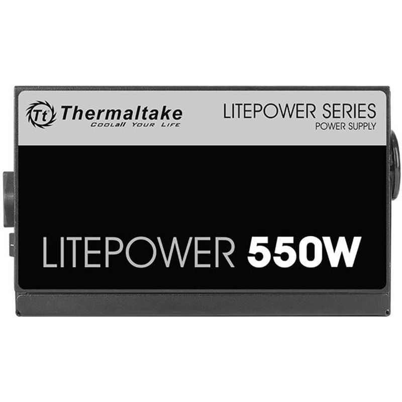 Thermaltake Litepower 550W PSU, single rail (38A), ventilator silentios de 120mm cu control termic automat, 2x 6+2pin PCIE, 5x SATA, 4x Molex, 1x Floppy, 1x 4+4pin EPS12V, SCP/OVP/OPP, Active PFC, compatibila cu standardele ATX 12V V2.3 & EPS 12V, dimensiuni (w/h/d): 150 x 86 x 140mm