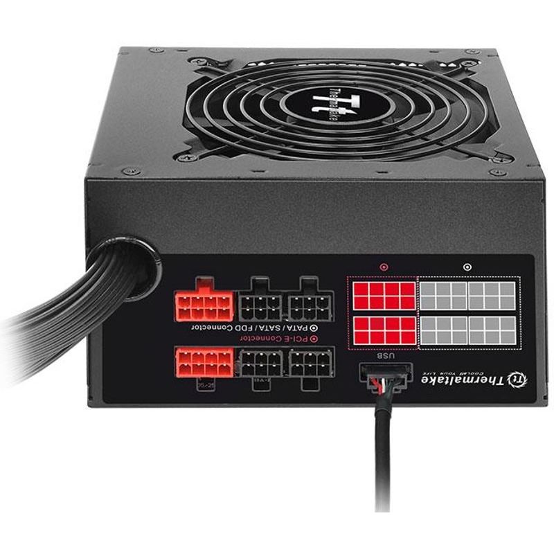 Thermaltake Smart Digital DPS G 500W Digital Modular PSU, certificata 80 PLUS Bronze, eficienta 86%, sursa digitala ce permite monitorizarea (voltaje, temperatura, consum, eficienta), controlul (viteza ventilator, voltaje) sau calcularea costului curentului consumat prin intermediul a 3 platforme inteligente: DPS G PC APP 2.0, DPS G Smart Power Management (SPM) Cloud 1.0 si DPS G Mobile APP 1.0, cabluri modulare plate pentru un wire management mai bun, single rail (38A), condensatori electrolitici japonezi, ventilator silentios de 120mm cu control termic automat, 2x 6+2pin PCIE, 6x SATA, 3x Molex, 1x Floppy, 1x 4+4pin EPS12V, SCP/OVP/OCP/OPP/UVP, certificari: CE, TUV, FCC, UL/CUL, BSMI, CCC, Active PFC, dimensiuni: 150 x 86 x 140mm, ATX 12V 2.31 si SSI EPS 12V 2.92