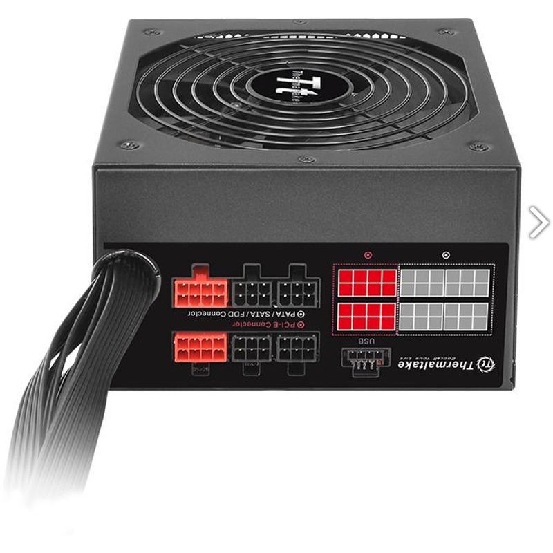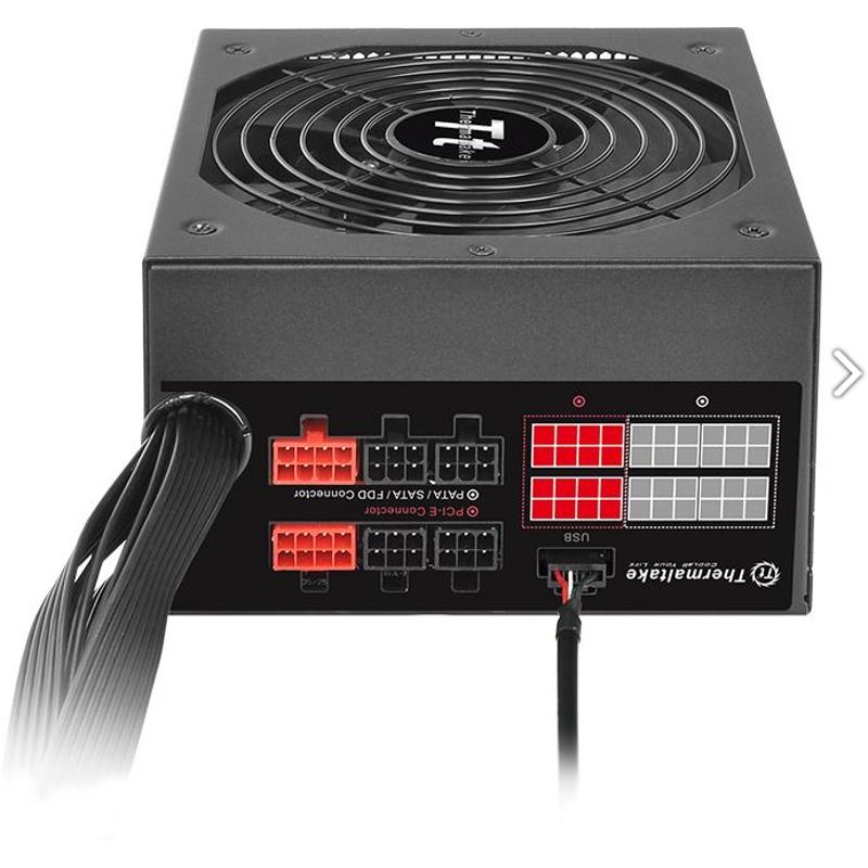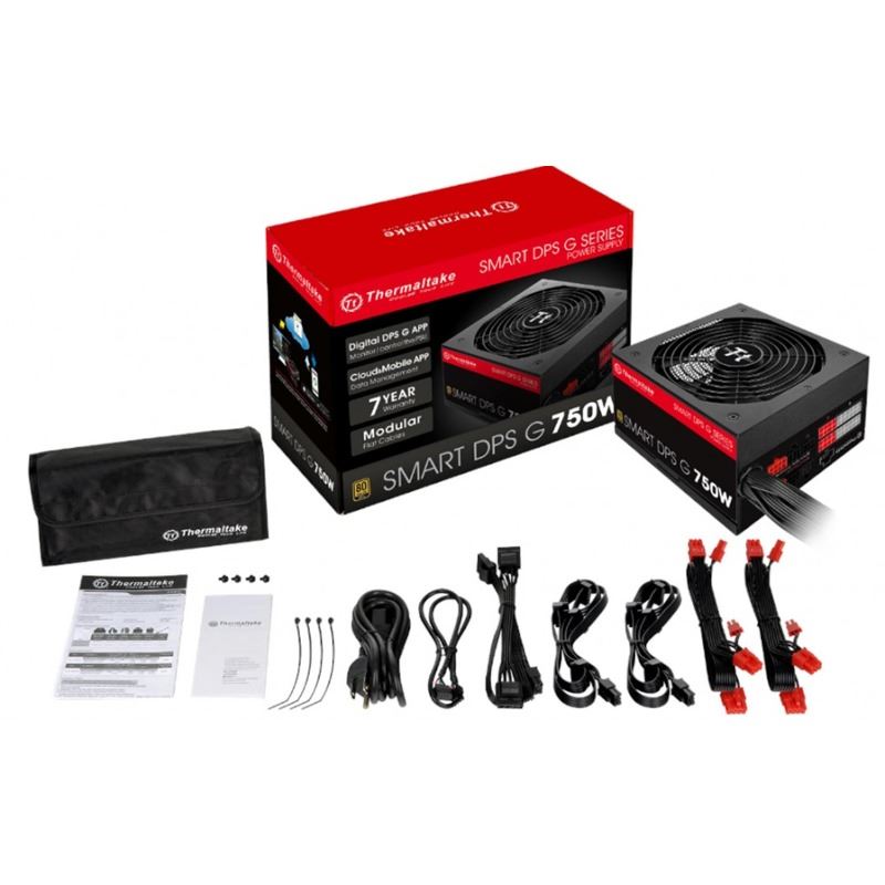 Thermaltake Smart DPS G 750W Digital PSU, certificata 80 PLUS Gold, eficienta 93%, sursa digitala ce permite monitorizarea (voltaje, temperatura, consum, eficienta), controlul (viteza ventilator, voltaje) sau calcularea costului curentului consumat prin intermediul a 3 platforme inteligente: DPS G PC APP 2.0, DPS G Smart Power Management (SPM) Cloud 1.0 si DPS G Mobile APP 1.0, cabluri modulare plate pentru un wire management mai bun, single rail (62A), condensatori electrolitici japonezi, ventilator silentios de 140mm cu control termic automat, 4x 6+2pin PCIE, 8x SATA, 3x Molex, 1x Floppy, 1x 4+4pin EPS12V, SCP/OVP/OCP/OPP/UVP, certificari: CE, TUV, FCC, UL/CUL, BSMI, CCC, Active PFC, dimensiuni: 150 x 86 x 160mm, ATX 12V 2.31 si SSI EPS 12V 2.92