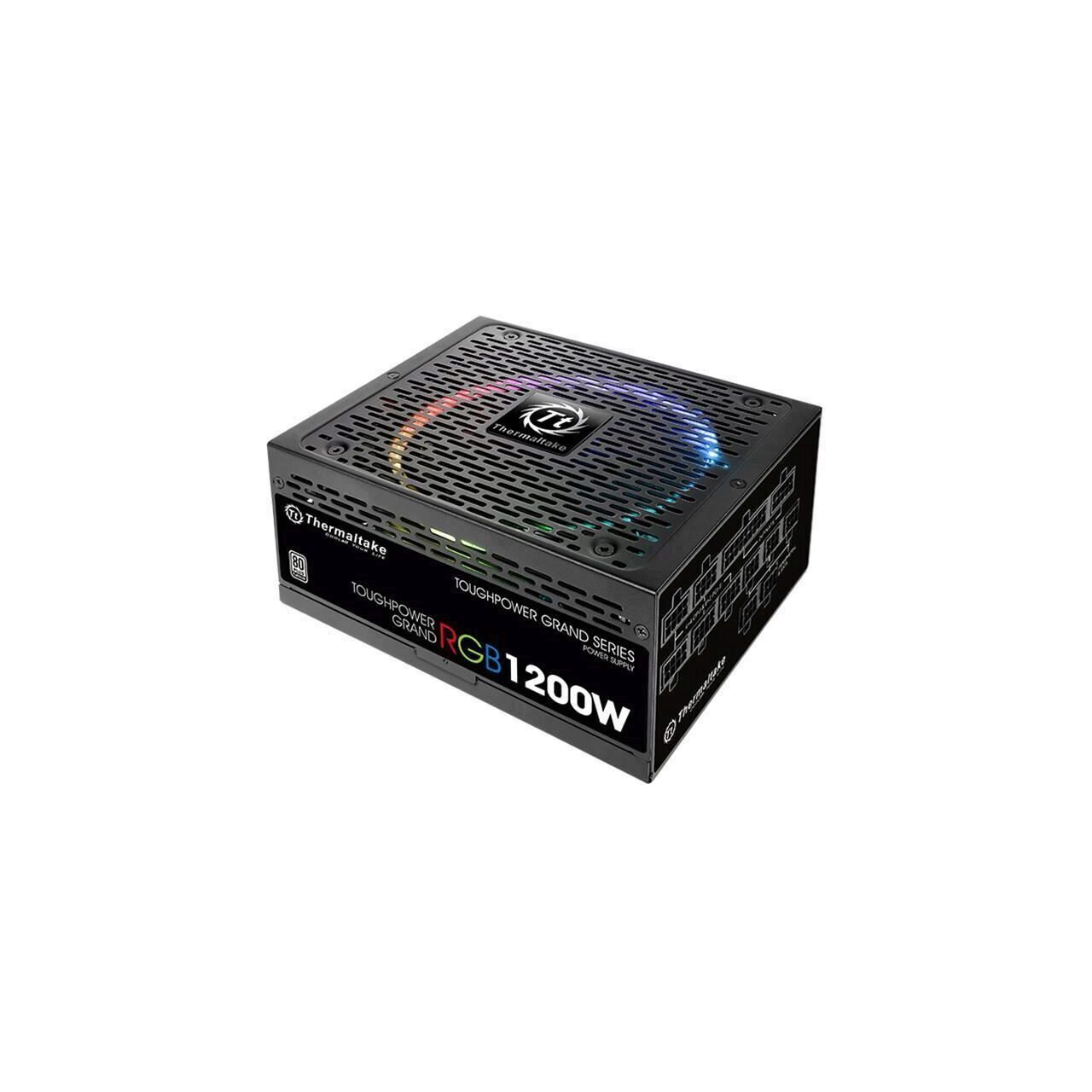 Thermaltake Toughpower Grand 1200W PSU, certificata 80 PLUS Platinum, eficienta: 92%, cabluri full modulare plate pentru un wire management mai bun, single rail (83.33A), condensatori electrolitici japonezi, ventilator silentios de 140mm cu “Smart Zero Fan”(ventilatorul porneste de la o incarcare mai mare de 40%) cu iluminare RGB, 8x 6+2pin PCIE, 12x SATA, 8x Molex, 1x Floppy, 2x 4+4pin EPS12V, 1x 24pin, OVP, SCP, OPP, UVP, OTP,OCP, Active PFC, dimensiuni: 150 x 86 x 180mm, ATX 12V 2.4 si SSI EPS 12V 2.92