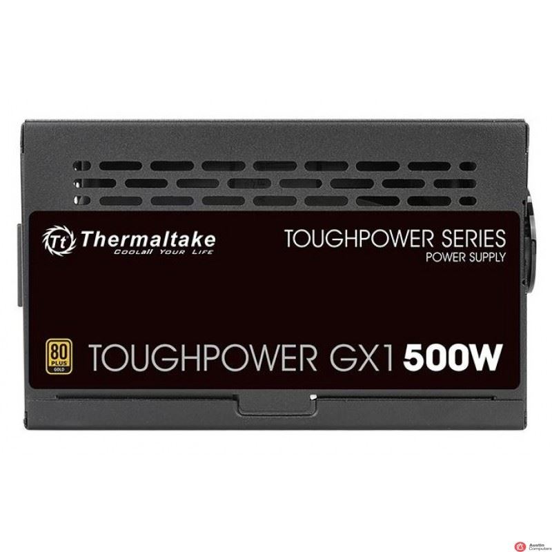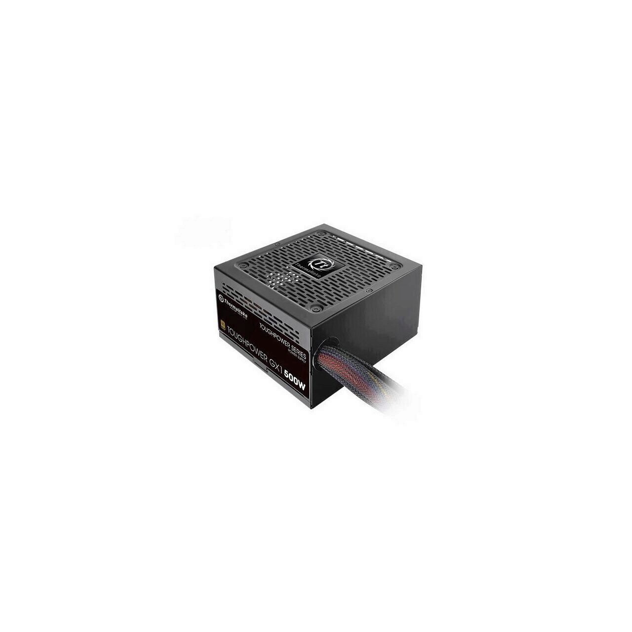 Sursa Thermaltake Toughpower GX1 500W, certificata 80 PLUS GOLD, eficienta pana la 90%, single rail (41A), ventilator silentios de 120mm cu control termic automat,1x 24pin (600mm), 2x 6+2pin PCIE (500mm+150mm), 6x SATA, 4x Molex, 1x Floppy, 1x 4+4pin EPS12V (650mm), OVP/OPP/SCP, Active PFC, dimensiuni (H x W x D): 86x150x140mm