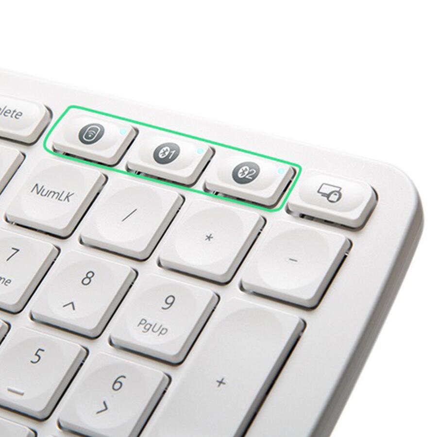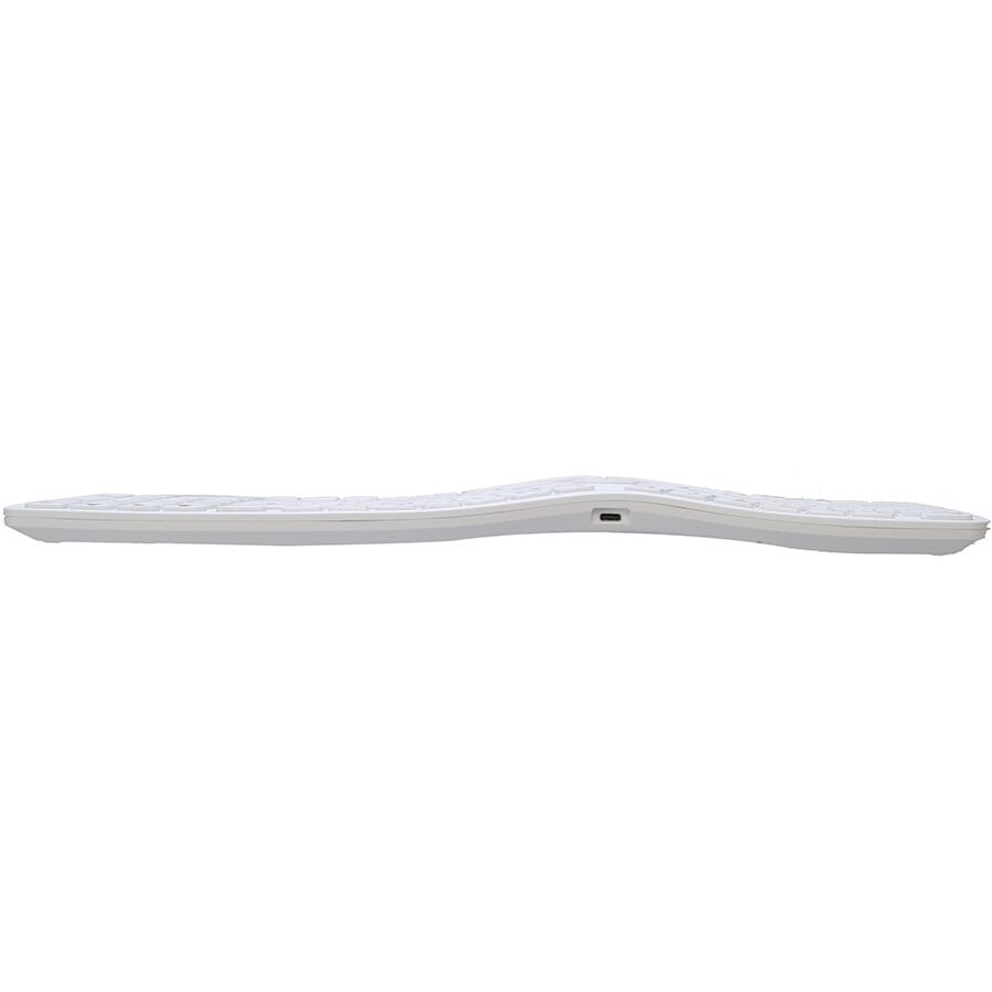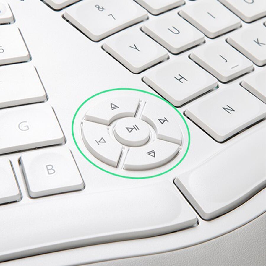 Tastatura bluetooth si wireless Delux GM902A alba, design ergonomic, 25 taste fara conflict (25-key rollover), 17 taste multimedia, numar butoane: 106, conectivitate: bluetooth sau 2.4Ghz, acumulator 1100mAh, palmrest textil detasabil moale, dimensiuni tastatura: 420x220x20mm