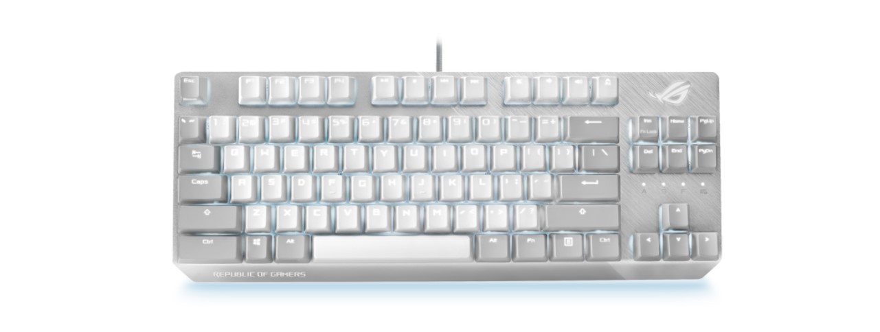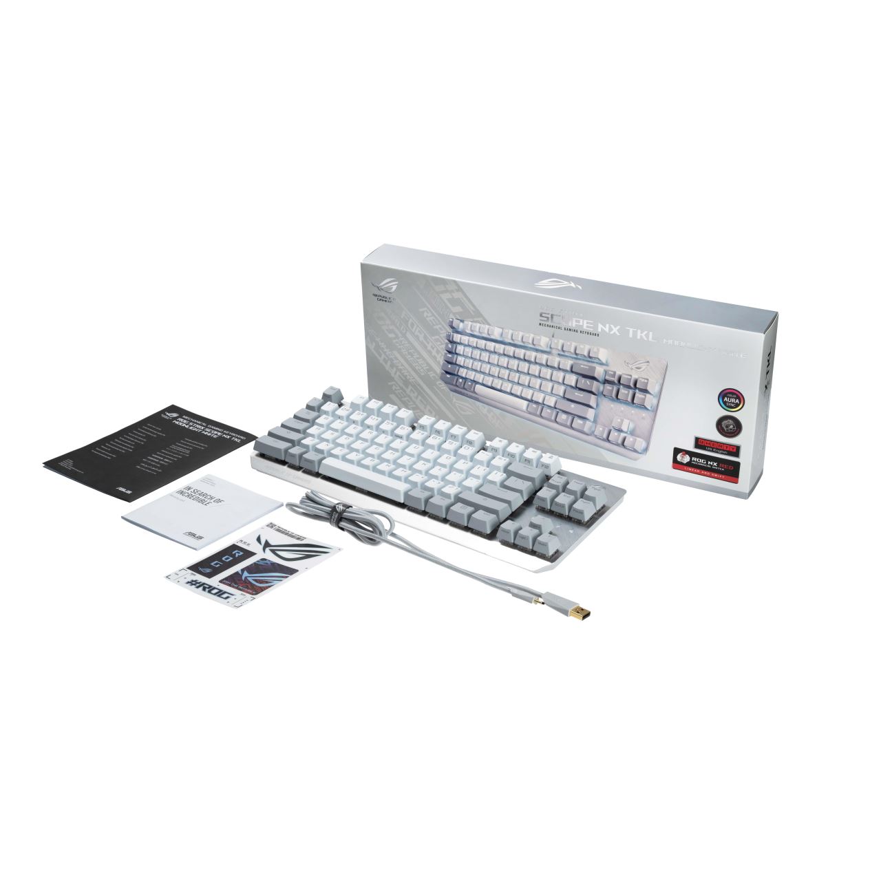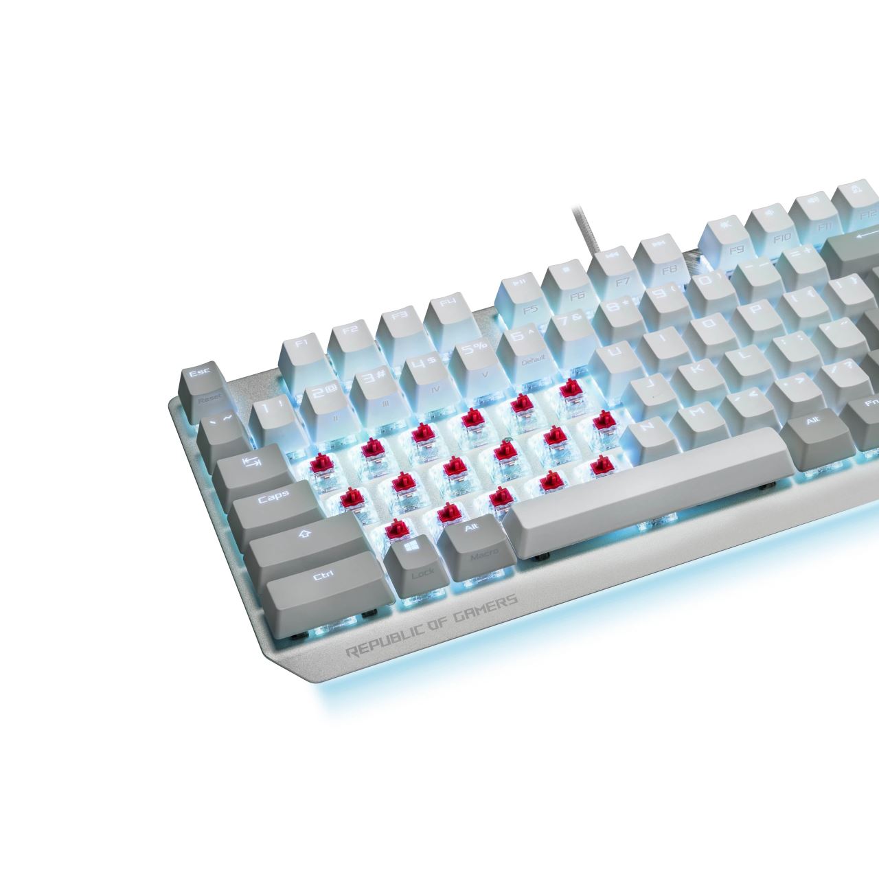 Tastatură gaming mecanica ASUS ROG Strix Scope NX TKL Moonlight White, RGB, switch-uri ROG NX Red, cadru din aluminiu, iluminare Aura Sync