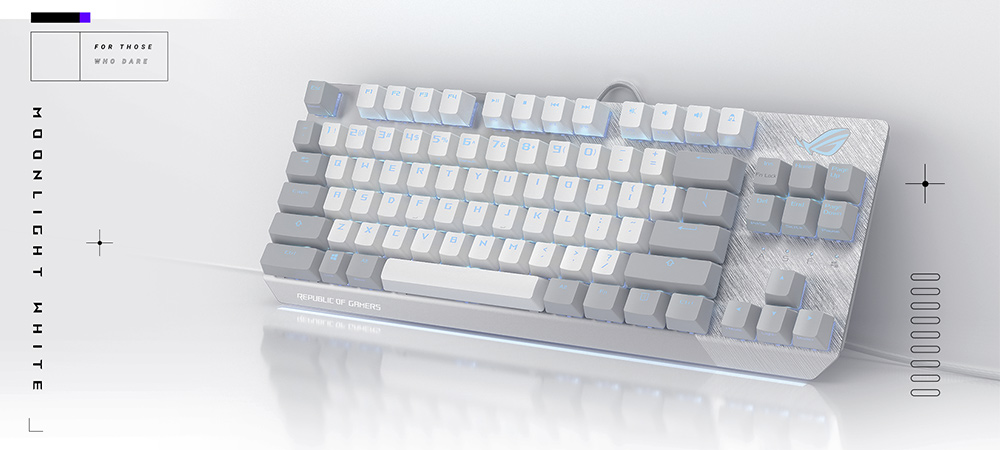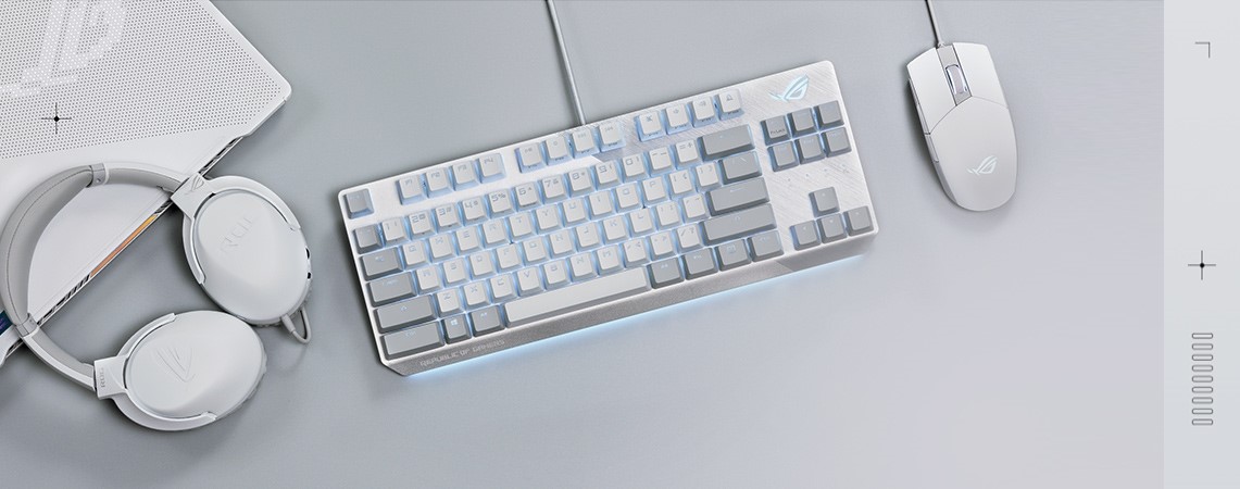 Noua serie de produse Moonlight White oferă o gamă de noi dispozitive cu o estetică curată. Înarmați-vă cu edițiile Moonlight White ale tastaturii ROG Strix Scope NX TKL, ale mouse-ului cu senzor optic Strix Impact II, ale căștilor Strix Go Core, ale căștilor in-ear Cetra II Core și ale laptopurilor de gaming Zephyrus G14 și G15.