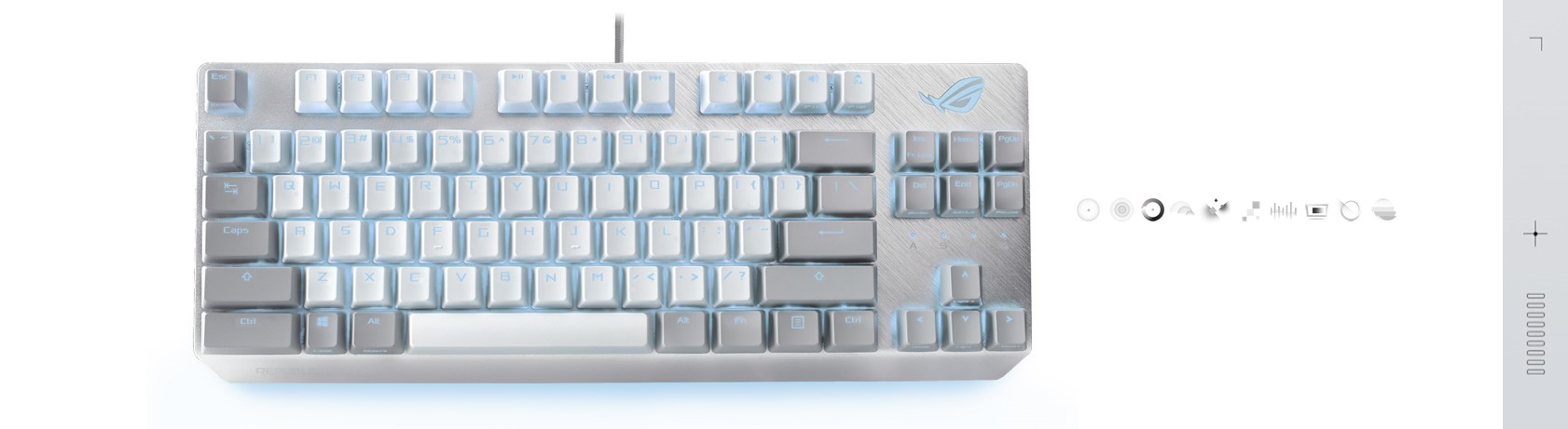 Bucură-te de o iluminare RGB vibrantă cu ROG Strix Scope NX TKL Moonlight White. Dispune de taste, indicatoare de blocare și logo-ul ROG iluminate individual, plus un efect RGB underglow surprinzător, care extinde iluminarea dincolo de tastatură. Alimentat de Aura Sync, întregul spectru de culori și o gamă de efecte de iluminare dinamică sunt la dispoziția ta pentru a crea o estetică completă a sistemului care este numai a ta. Iluminarea Strix Scope NX TKL Moonlight White este, de asemenea, ușor de sincronizat cu ecosistemul extins Aura, astfel încât este ușor să construiești un mediu de joc care să strălucească cu adevărat.