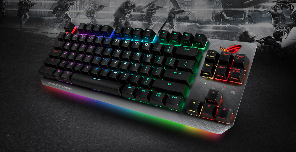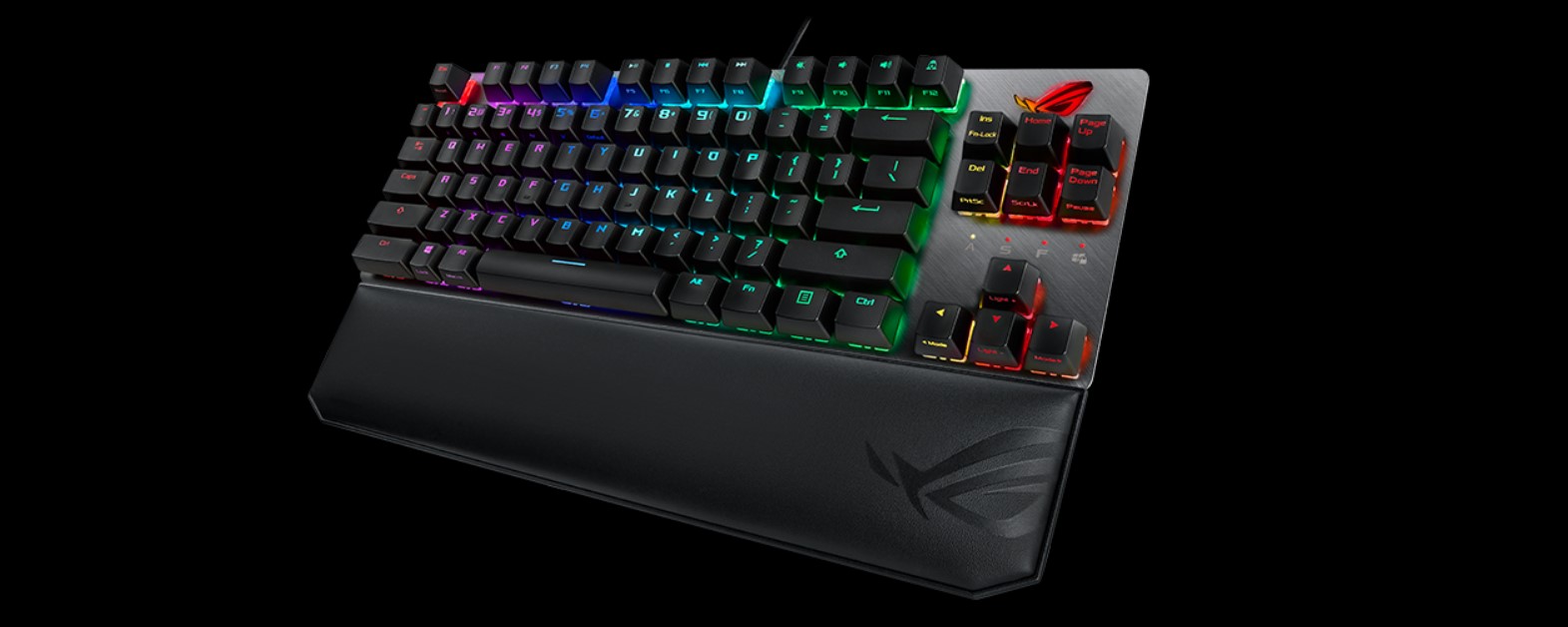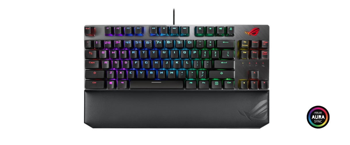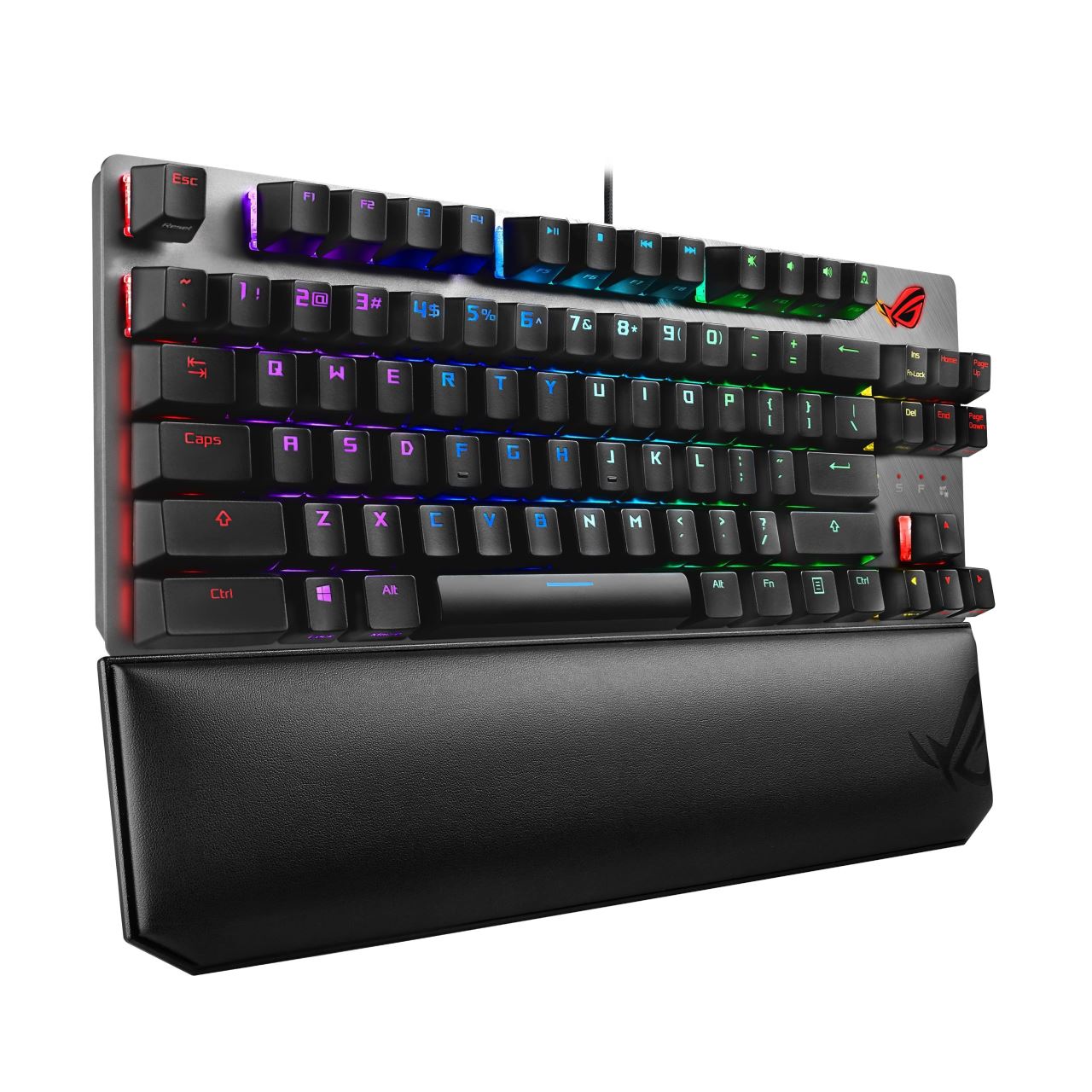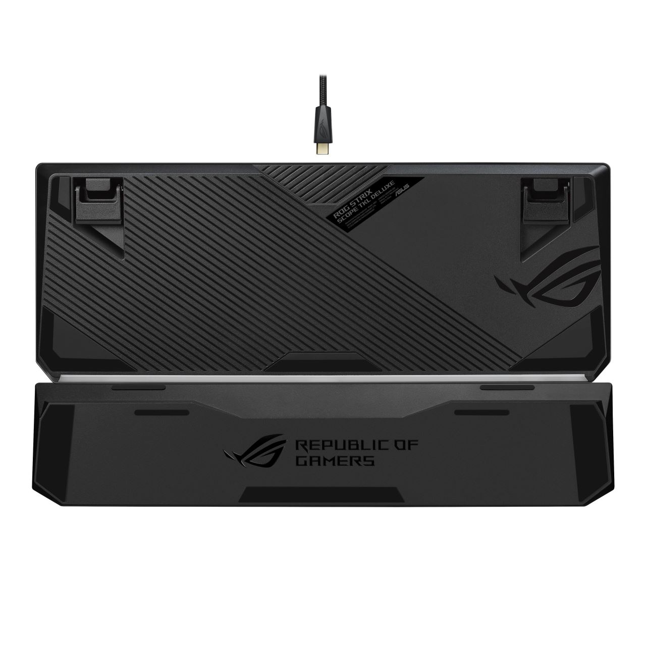 Tastatură gaming mecanica ASUS ROG Strix Scope NX TKL Deluxe, RGB, switch-uri ROG NX Red, cadru din aluminiu, suport ergonomic pentru încheietură, iluminare Aura Sync