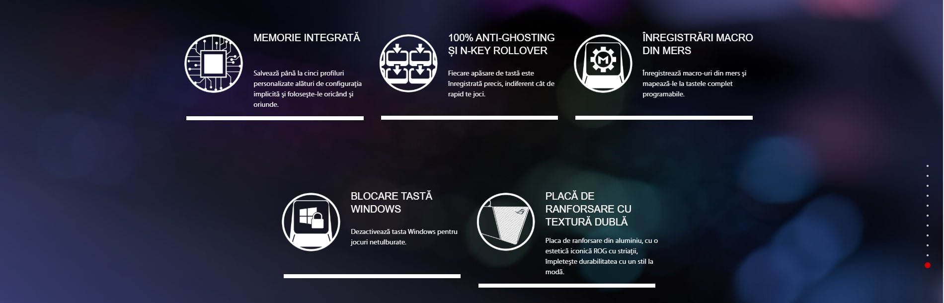 - Switch-uri Cherry MX: Fabricate în Germania, actuatoarele au micro switch-uri pentru intrarea precisă a comenzilor, cu feedback tactil