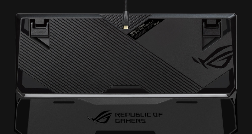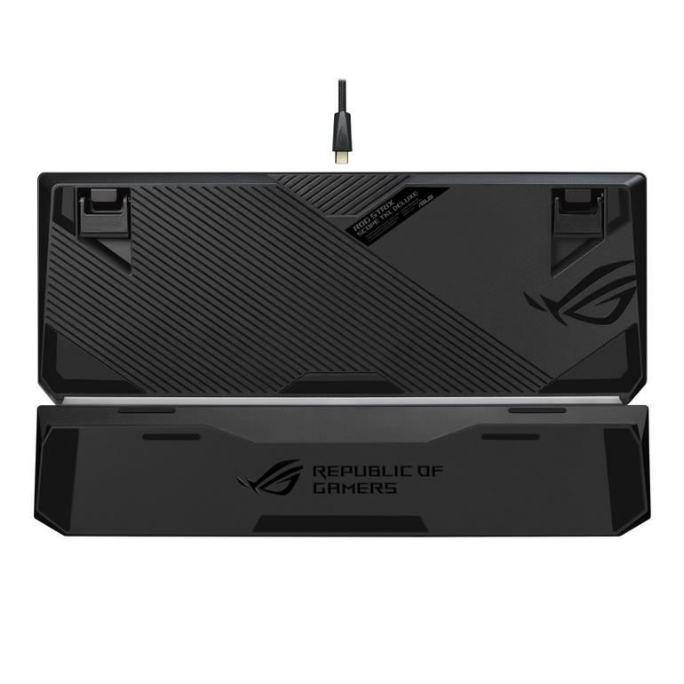 Designul compact și fără ramă al lui ROG Strix Scope TKL Deluxe este ideal pentru fanii minimalismului sau pentru cei care, pur și simplu, vor mai mult spațiu pe birou. Tastatura vine cu un cablu detașabil, fiind mai ușor și mai sigur de transportat într-un rucsac. Cablul cu conector Tip-C poate fi folosit și pe post de cablu de încărcare pentru dispozitivele mobile, atunci când ești în mișcare.