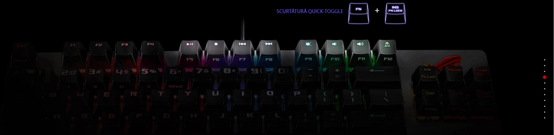 - Switch Quick-Toggle: Comută instantaneu între intrările tastelor cu funcții sau a celor pentru controlul media