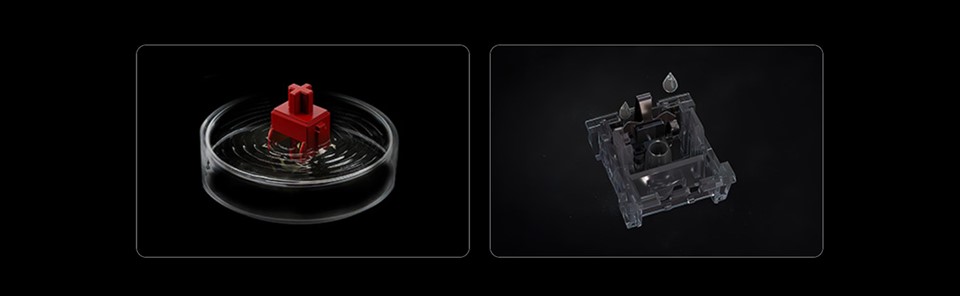 Comutatoarele au tije și carcase de bază lubrifiate care oferă o senzație de clic mai fină și, respectiv, elimină zgomotele de ricoșeu ale arcului.
