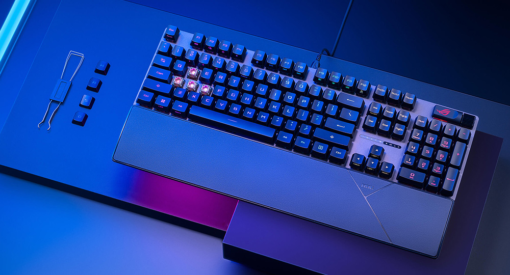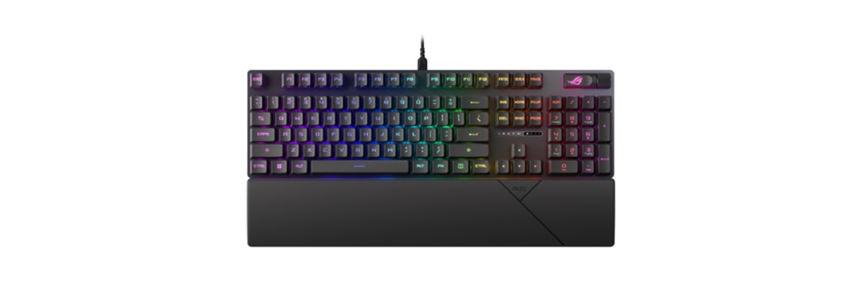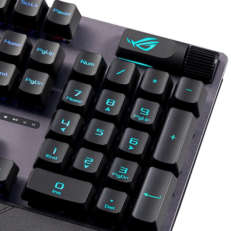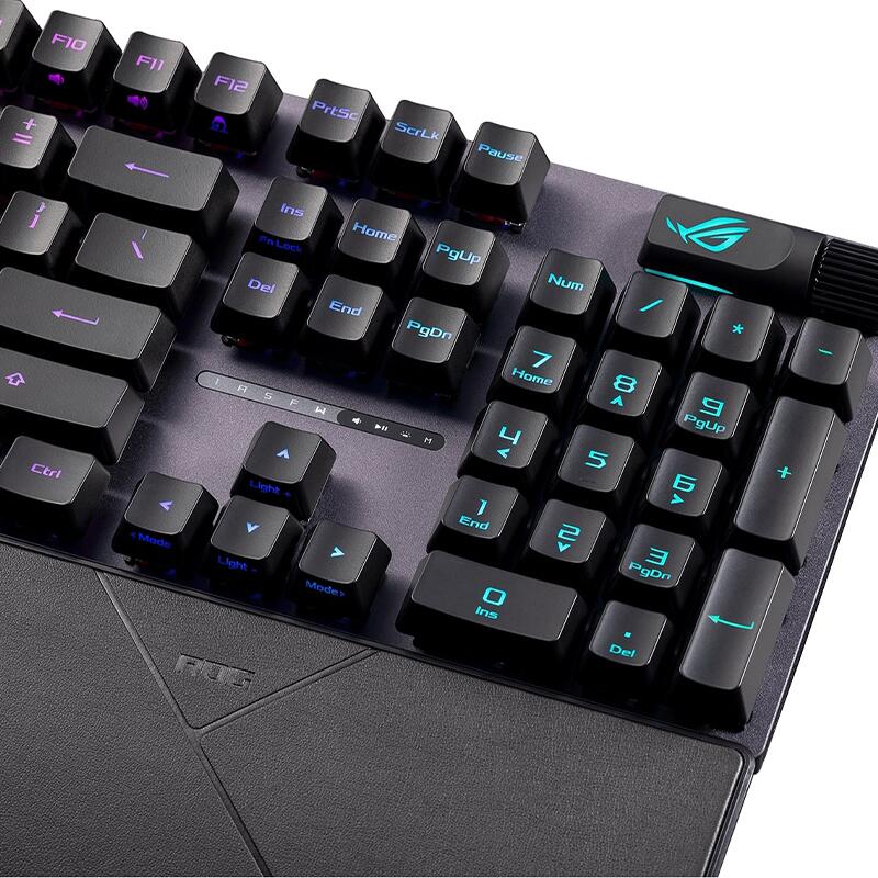- Capace de taste din PBT: Capacele de taste ROG PBT durabile cu dublă injecție oferă o senzație premium și rezistență la lustruire