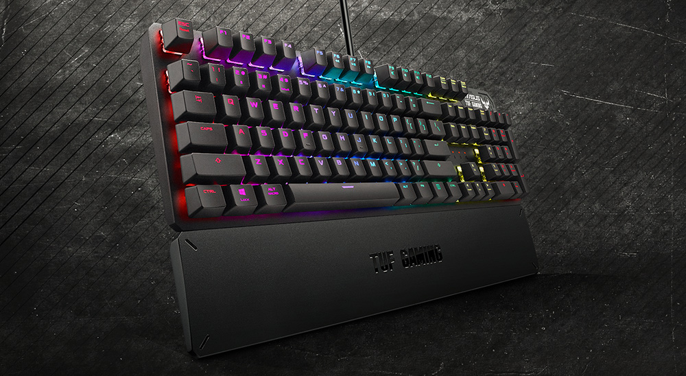 ASUS TUF Gaming K3 este o tastatura mecanica RGB care are switch-uri durabile pentru o performanta sensibila si fiabila. Iluminarea RGB pentru toate tastele ofera optiuni de personalizare nelimitate, in timp ce suportul magnetic detasabil pentru incheietura mainii ofera suport si confort suplimentar pentru maratoanele de jocuri. In plus, K3 ofera passthrough USB 2.0 convenabil, un capac superior din aluminiu de calitate aerospatiala, opt taste complet programabile cu memorie integrata si taste media - astfel incat vei fi gata sa joci ca un profesionist.