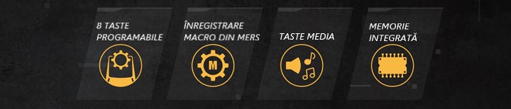 - Opt taste complet programabile pentru a mapa macro-urile din mers si pentru a stoca profiluri pe memoria onbord