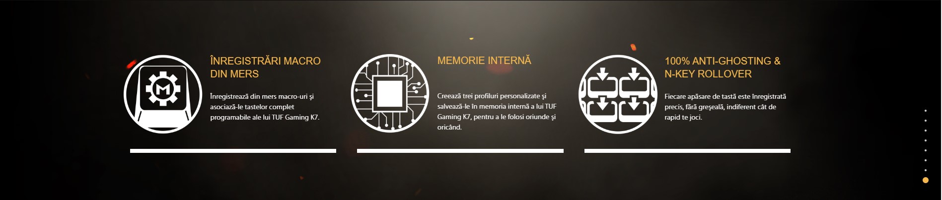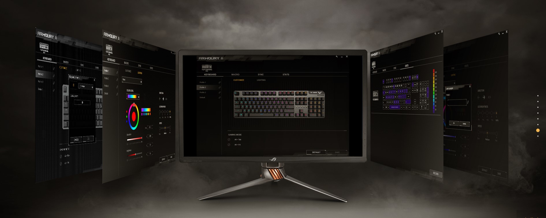 - Mapează macro-uri din mers pe tastele complet programabile, ajustează setări cu software-ul îmbunătățit Armoury II și stochează profiluri în memoria internă a tastaturii.