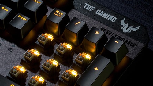Fiecare switch optico-mecanic TUF emite o rază de lumină infraroșie. Apăsând o tastă, fasciculul de lumină este legat, pentru o tastare aproape instantanee. Acest design unic elimină latența de transmisie de 5 ms a contactelor metalice tradiționale, reducând timpul total de declanșare la doar 0,2 ms – astfel, tastarea devine mai rapidă decât o clipire!