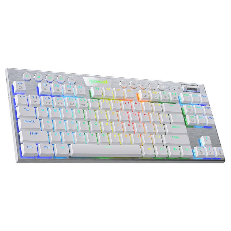 Tastatura gaming mecanica Bluetooth cu fir si wireless Redragon Horus TKL alba iluminare RGB switch-uri rosii