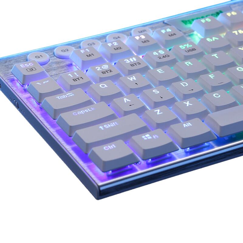 Tastatura gaming mecanica Bluetooth cu fir si wireless Redragon Horus TKL alba iluminare RGB switch-uri rosii, sasiu din metal, toate tastele fara conflict, switch-uri rosii Redragon (durata de viata: 50 de milioane de apasari), 4 switch-uri de schimb, protocol bluetooth: 5.0, se pot conecta 3 device-uri simultan (se selecteaza device-ul pe care il folositi din switch-ul de pe laterala tastaturii), baterie: 1900mAh, protocol wireless 2.4 Ghz, iluminare LED RGB a tastelor (posibilitatea reglarea intensitatii luminoase, 21 moduri de iluminare), logo iluminat RGB, tasta WIN poate fi dezactivata in timpul jocurilor, soft pentru configurare, caracterele de pe taste nu se sterg datorita constructiei prin injectie dubla de plastic (double shot injection keycaps), cablu detasabil, conector USB Type-C, dongle wireless USB, dimensiuni: 357x148x22mm, greutate: 600g