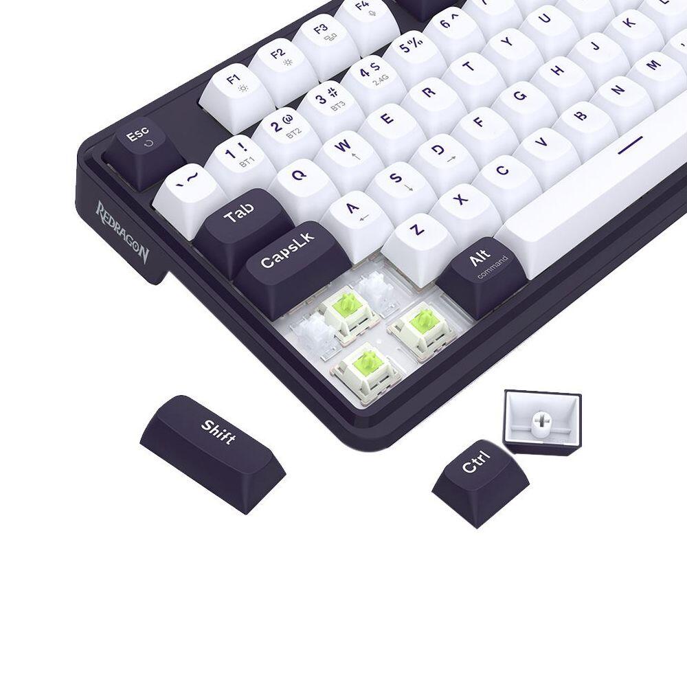 Tastatura gaming mecanica Bluetooth cu si fara fir Redragon Antonium Pro 108 neagra cu alb iluminare RGB