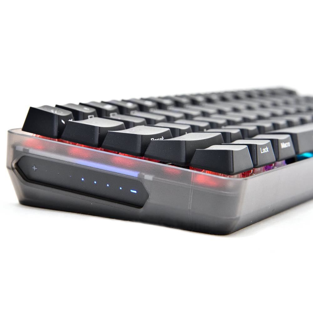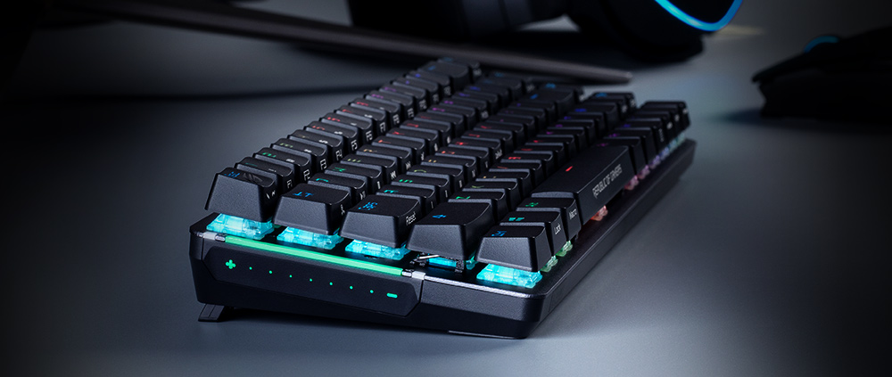 - Aranjamentul compact 65% încorporează cu măiestrie tastele direcționale și de navigație într-un cadrul de tastatură de 60 %