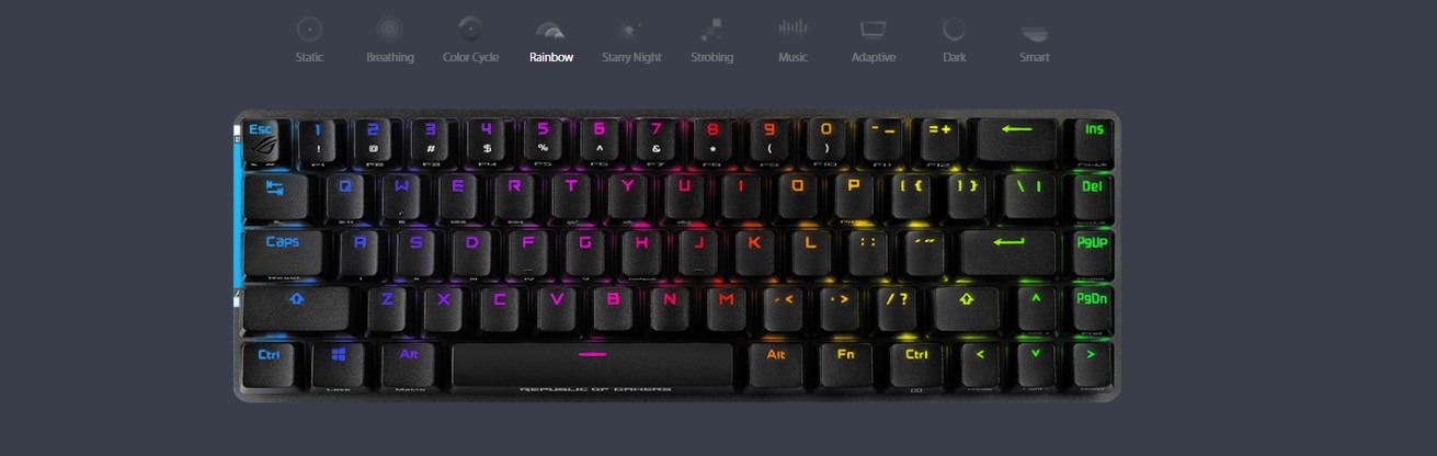 - Prima tastatură ROG care este echipată cu Aura Sync wireless cu iluminare RGB per-tastă