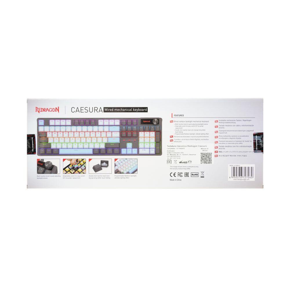 Tastatura gaming mecanica Redragon Caesura neagra cu bleumarin iluminare Rainbow switch-uri rosii,