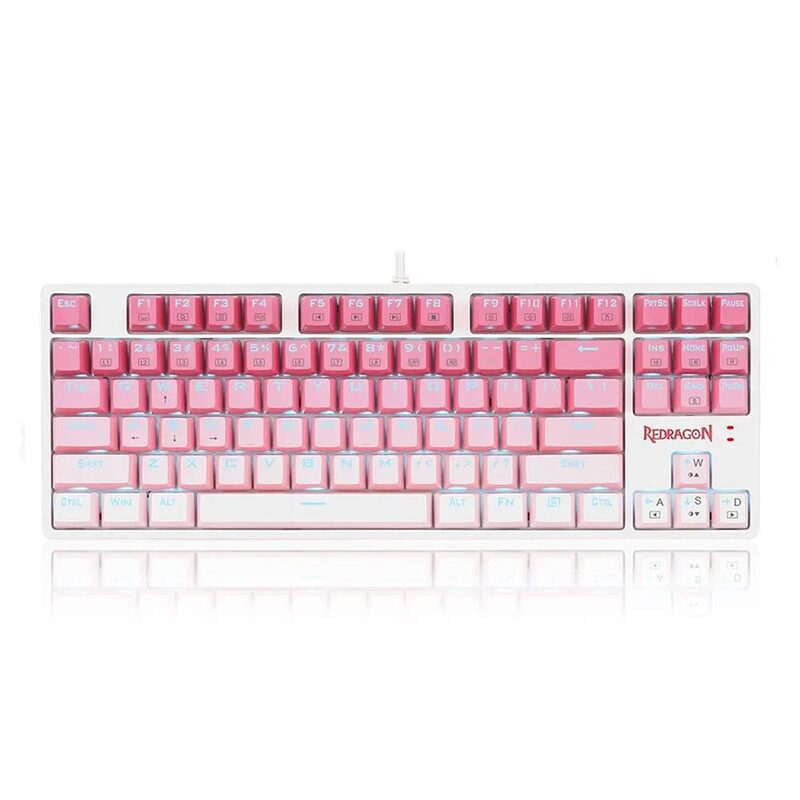Tastatura gaming mecanica Redragon Cass iluminare RGB alba cu roz