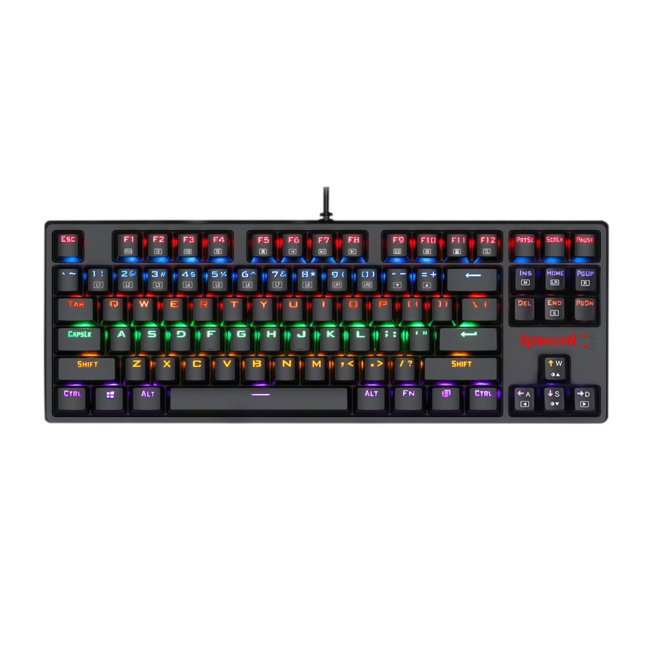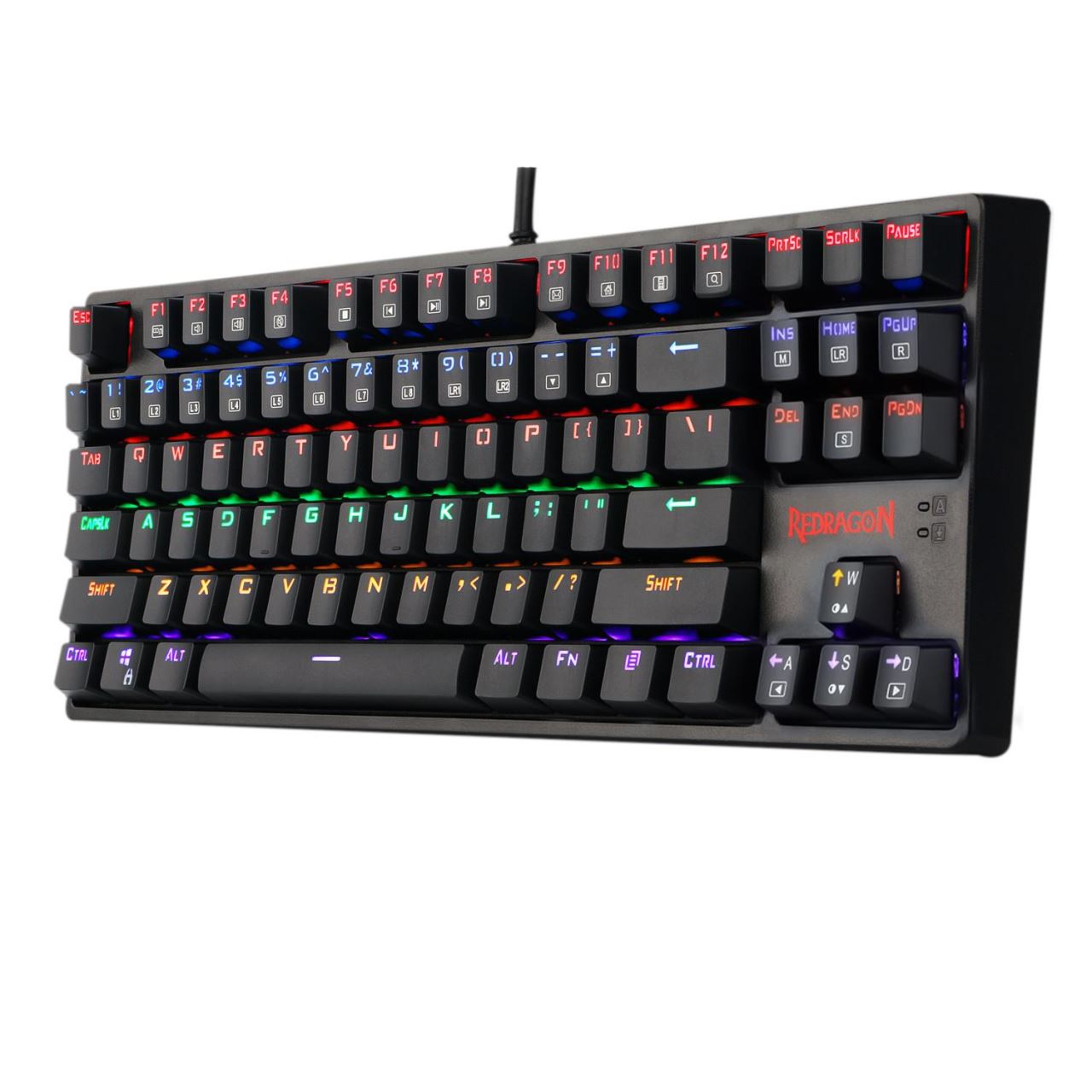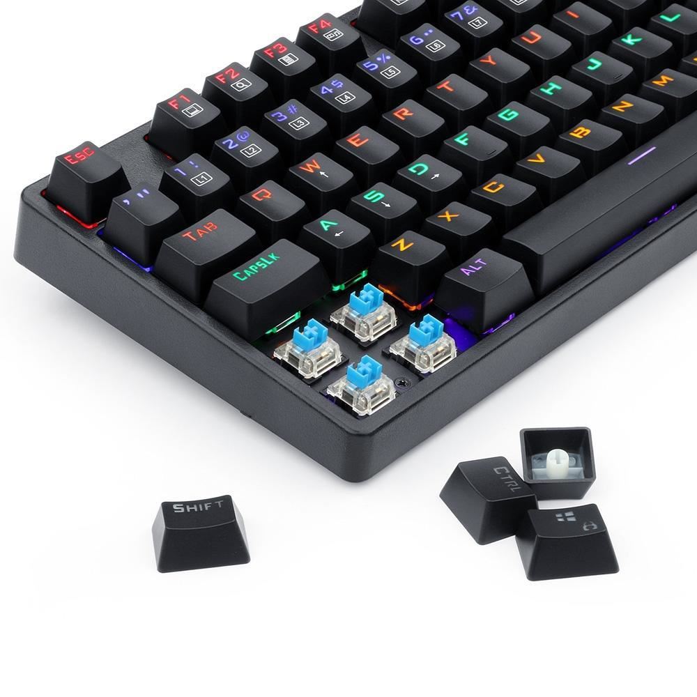 Tastatura gaming mecanica Redragon Daksa neagra iluminare rainbow, toate tastele fara conflict - 87 taste (n-key rollover), iluminare LED rainbow a tastelor (9 moduri de iluminare, reglarea intensitatii), 12 taste multimedia, tasta WIN poate fi dezactivata in timpul jocurilor, conector USB placat cu aur, USB