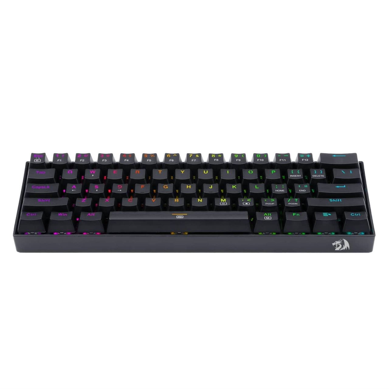 Tastatura gaming mecanica Redragon Dragonborn neagra iluminare RGB switch-uri rosii, switch-uri Redragon rosii, toate tastele fara conflict - 61 taste (n-key rollover), iluminare LED RGB a tastelor (13 moduri de iluminare, reglarea intensitatii), functie de inregistrare macro on-the-fly, tasta WIN poate fi dezactivata in timpul jocurilor, conector USB Type-C, cablu USB detasabil, dimensiuni: 292x102x36mm, greutate: 0.7kg