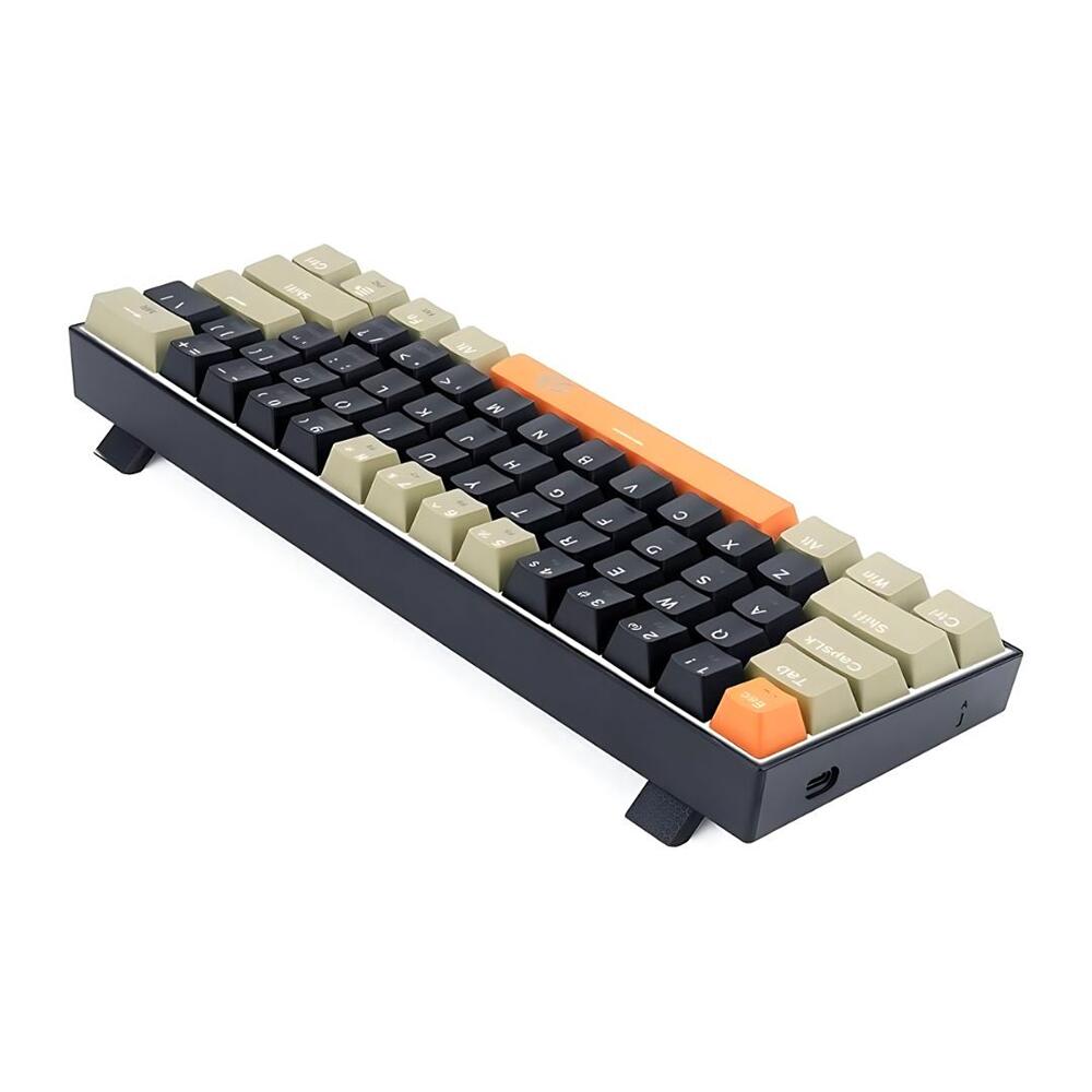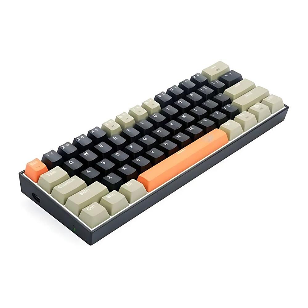 Tastatura gaming mecanica Redragon Lakshmi neagra cu portocaliu si gri iluminare alba, toate tastele fara conflict, 61 taste (n-key rollover), switch-uri albastre Redragon (durata de viata: 50 de milioane de apasari), iluminare LED alba a tastelor (posibilitatea reglarea intensitatii luminoase, 17 moduri de iluminare), tasta WIN poate fi dezactivata in timpul jocurilor, caracterele de pe taste nu se sterg datorita constructiei prin injectie dubla de plastic (double shot injection keycaps), cablu detasabil, conector USB Type-C, dimensiuni: 292x102x36mm, greutate: 569g