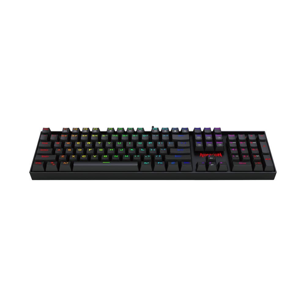 Tastatura gaming mecanica Redragon Mitra neagra iluminare RGB switch-uri rosii, toate tastele fara conflict (n-key rollover), iluminare LED RGB a tastelor (reglarea intensitatii, efecte breathing), 12 taste multimedia, tasta WIN poate fi dezactivata in timpul jocurilor, conector USB placat cu aur, USB