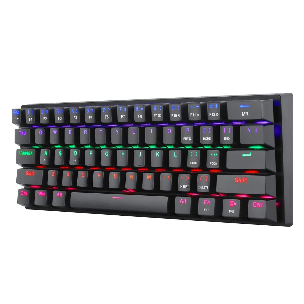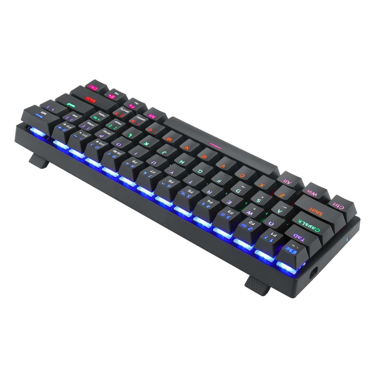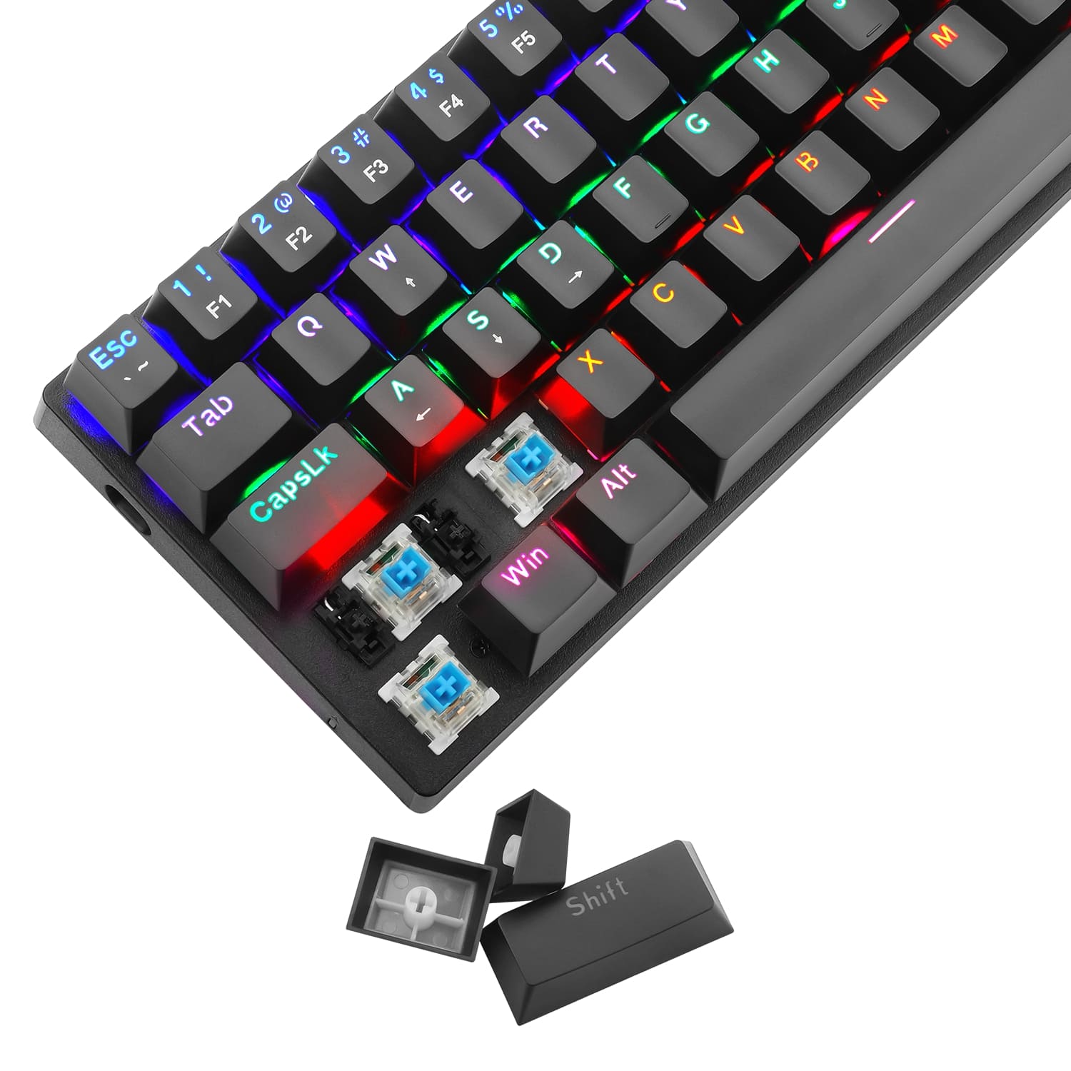 Tastatura gaming mecanica T-Dagger Arena neagra, switch-uri ET-7 albastre, toate tastele fara conflict - 61 taste (n-key rollover), iluminare LED RGB a tastelor (13 moduri de iluminare, reglarea intensitatii), functie de inregistrare macro on-the-fly, tasta WIN poate fi dezactivata in timpul jocurilor, conector USB Type-C, cablu USB detasabil, dimensiuni: 292x102x36mm, greutate: 0.7kg