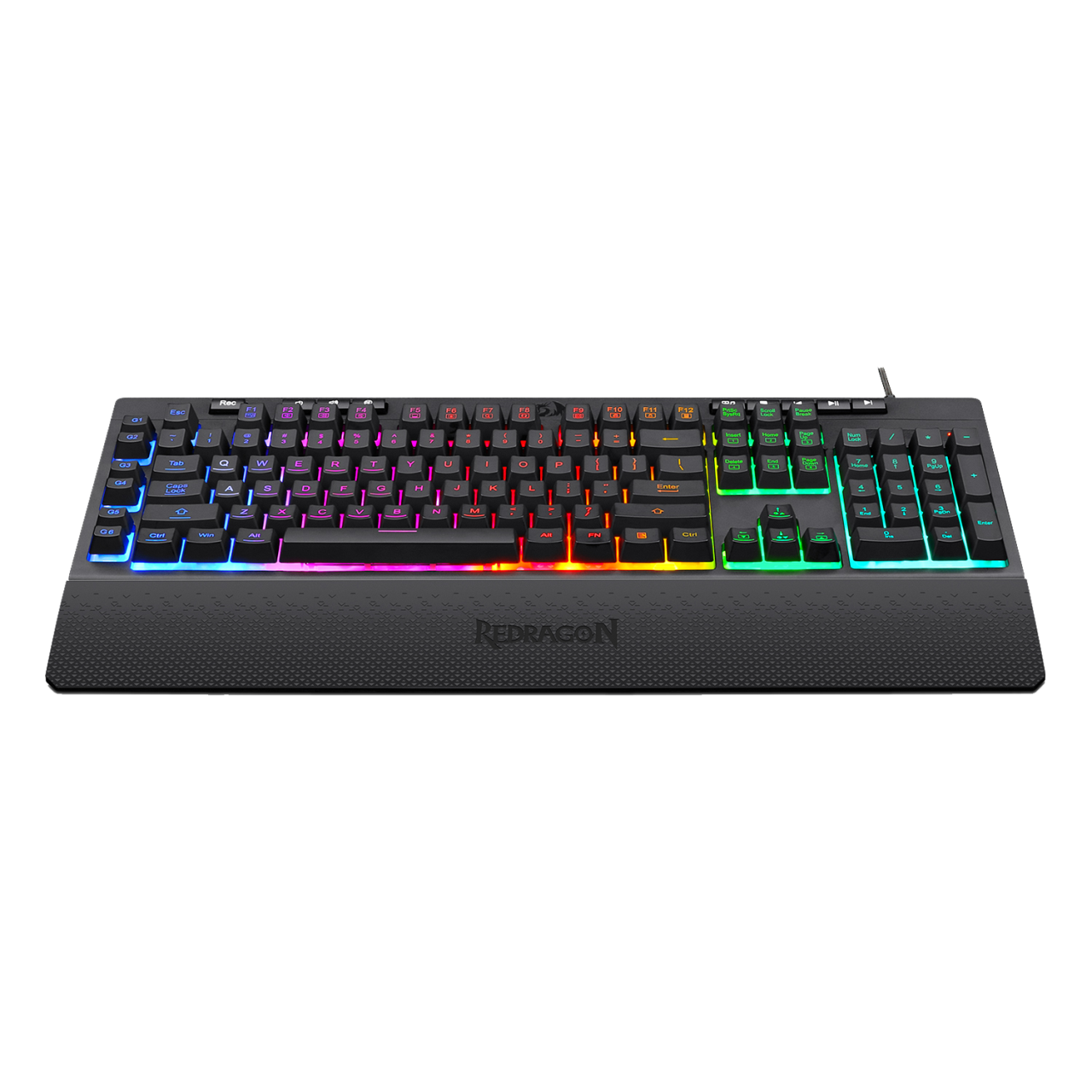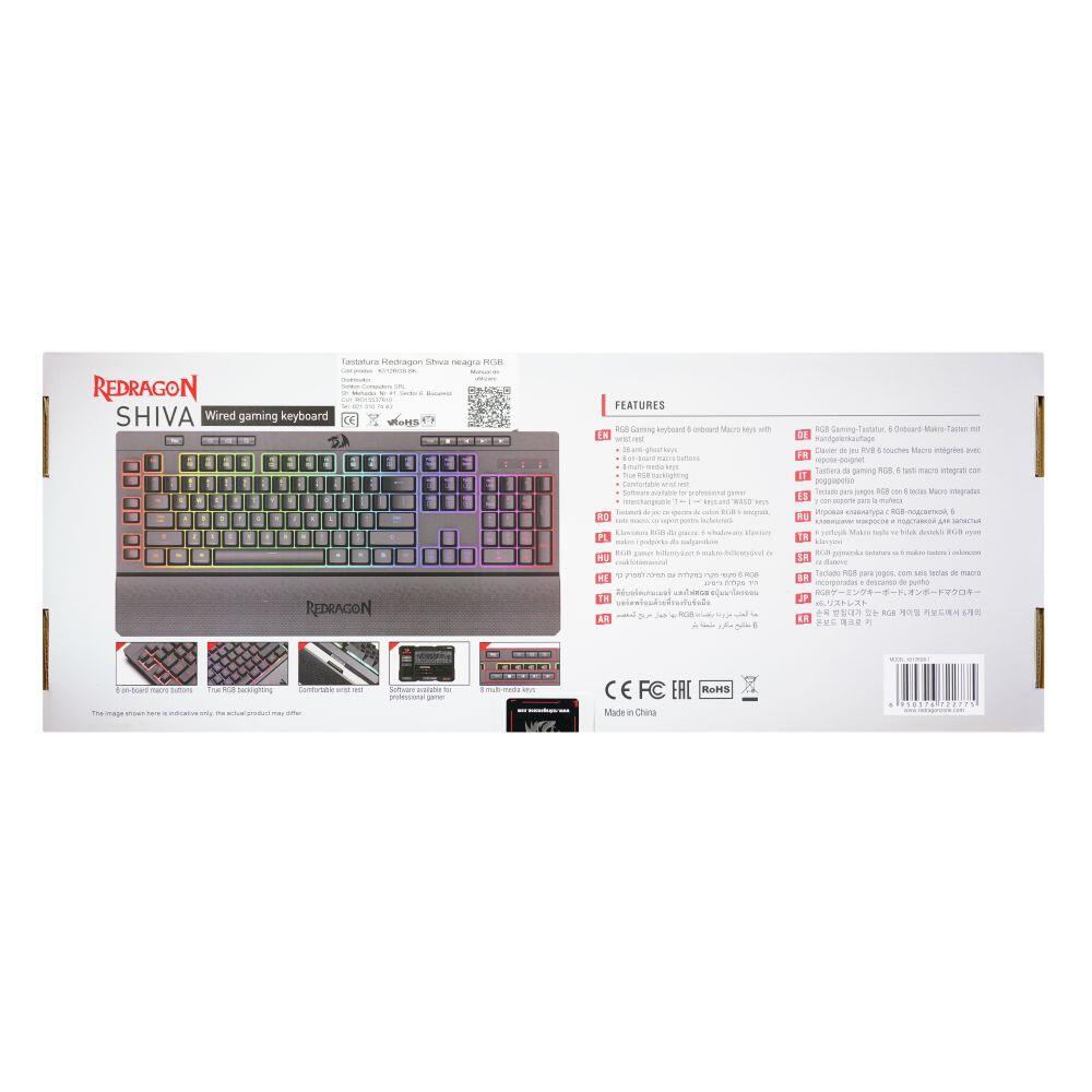 Tastatura gaming Redragon Shiva neagra iluminare RGB, 26 taste fara conflict (26-key rollover), iluminare LED RGB a tastelor, 8 taste multimedia, 6 butoane programabile, tasta WIN poate fi dezactivata in timpul jocurilor, conector USB placat cu aur, dimensiuni: 440x153x32mm, greutate: 1.09kg