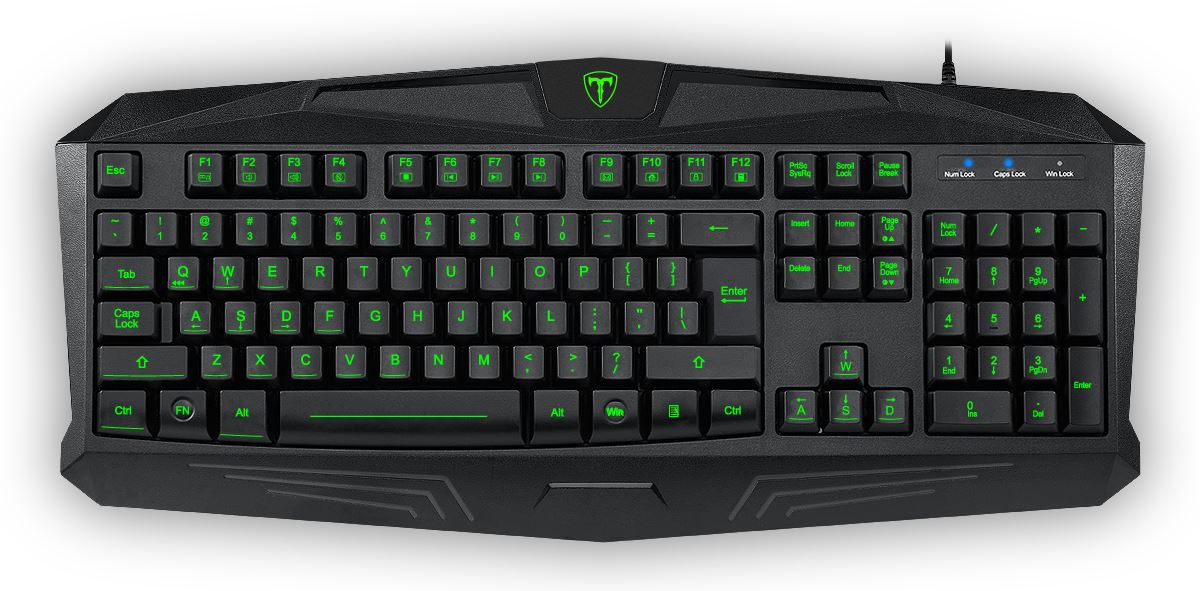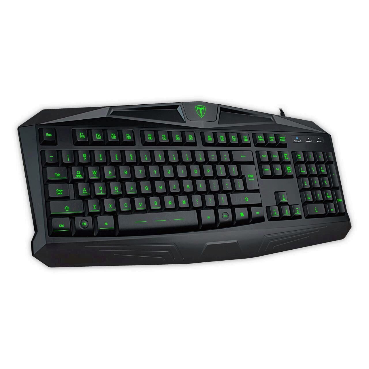 Tastatura gaming T-Dagger Minesweeping iluminare verde neagra, 19 taste fara conflict (19-key rollover), iluminare LED verde a tastelor, 12 taste multimedia, conector USB, dimensiuni: 445x203x28mm