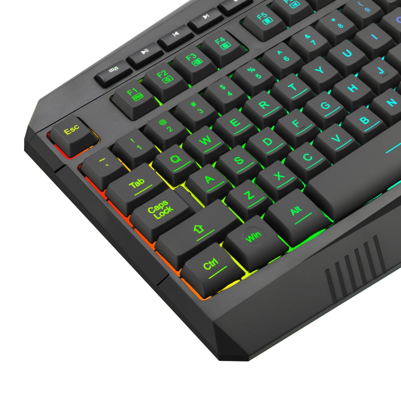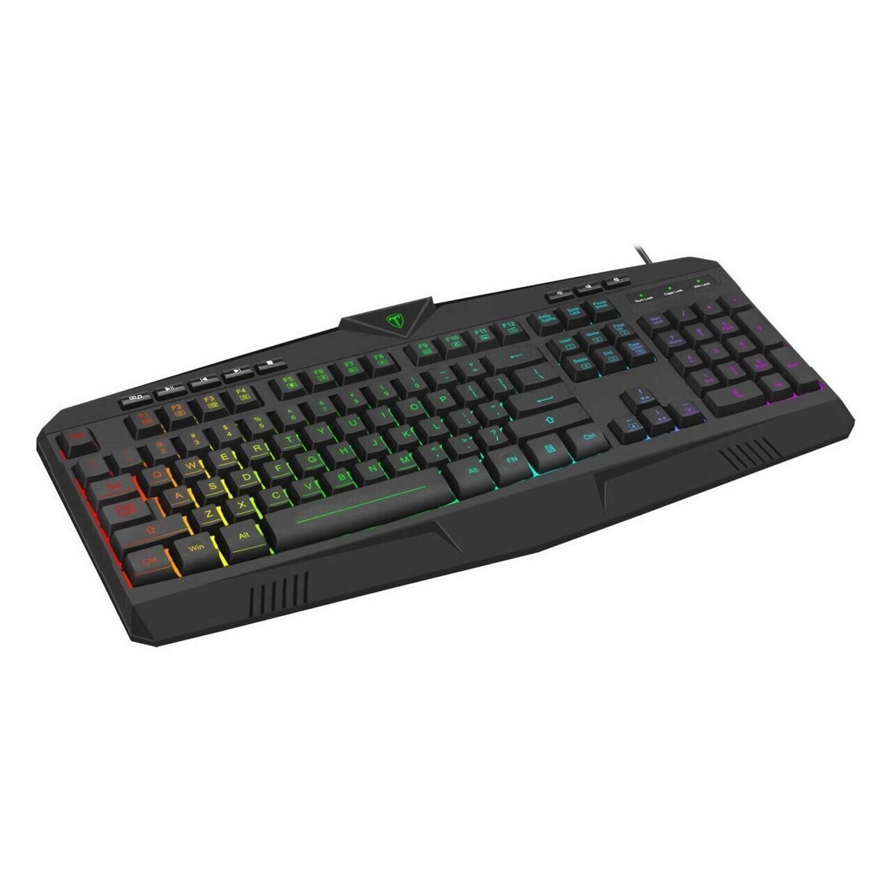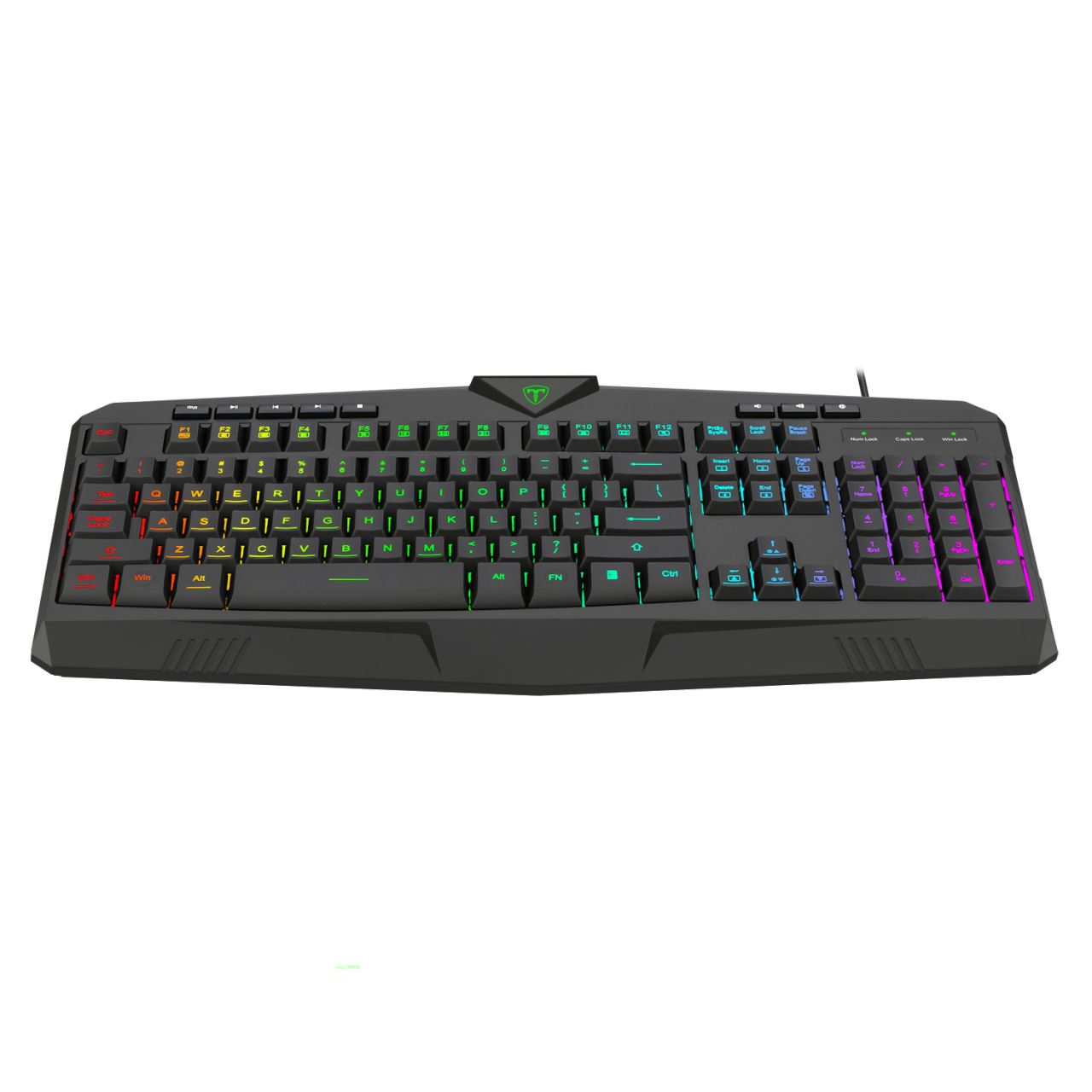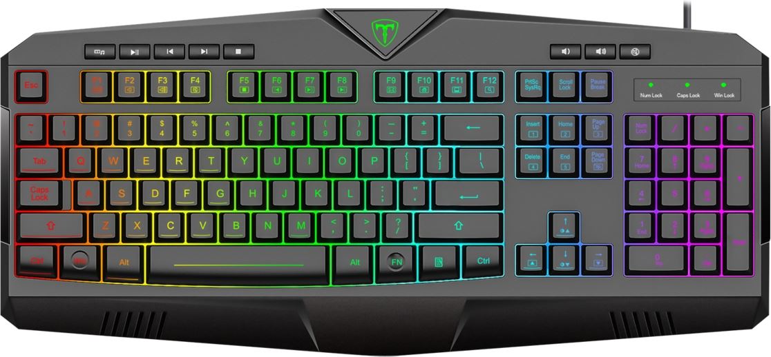 Tastatura gaming T-Dagger Submarine neagra iluminare RGB, 25 taste fara conflict (25-key rollover), iluminare LED RGB a tastelor, 8 taste multimedia, conector USB, dimensiuni: 446x203x38mm
