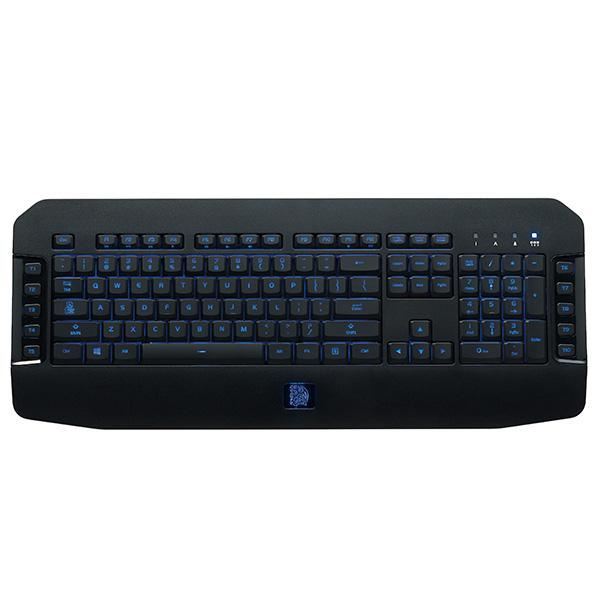 Tt eSPORTS CHALLENGER Go, iluminare LED albastra a tastelor cu 4 nivele de intensitate, 2 port-uri USB 2.0 pentru periferice, software pentru configurare (posibilitatea setarii a 4 profile, posibilitatea salvarii profilelor in memoria tastaturii, profilele por fi schimbate direct de pe tastatura), 10 taste macro, 7 taste multimedia, sistem de cable management, dimensiuni: 497 x 202 x 24mm, lungime cablu: 2m, conector USB placat cu aur, USB