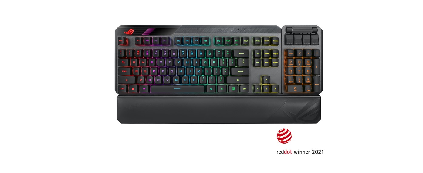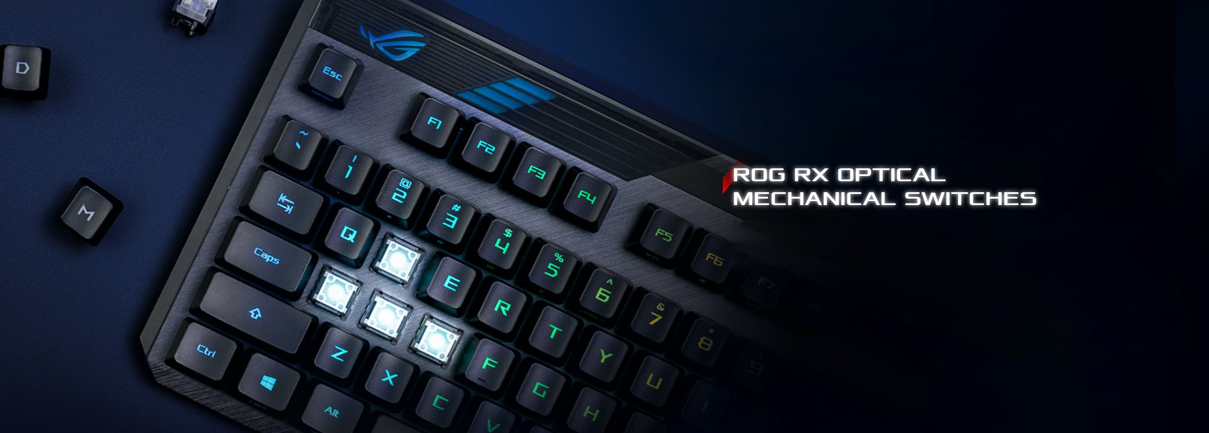 - Comutatoare optico-mecanice ROG RX: Comutatoarele RX Red dispun de iluminare centralizată și oferă taste rezistente fără clătinare cu o întârziere la debounce aproape de zero