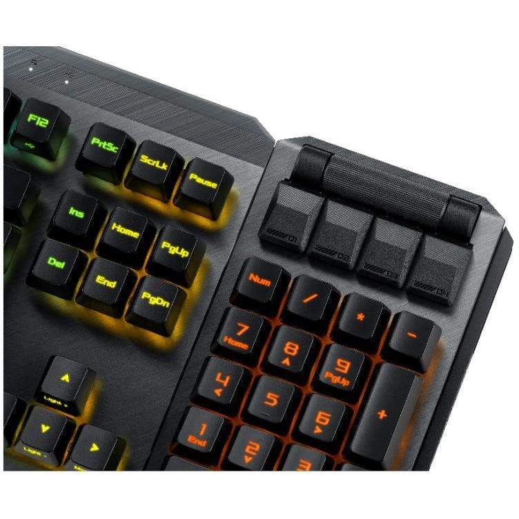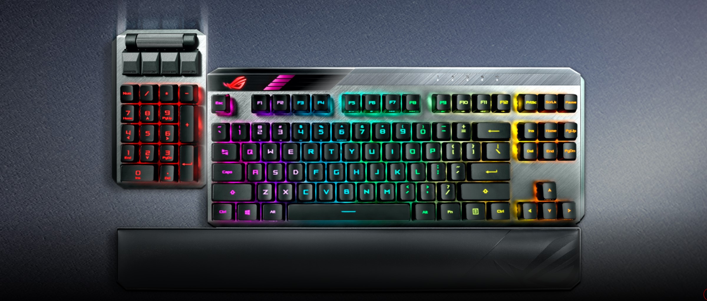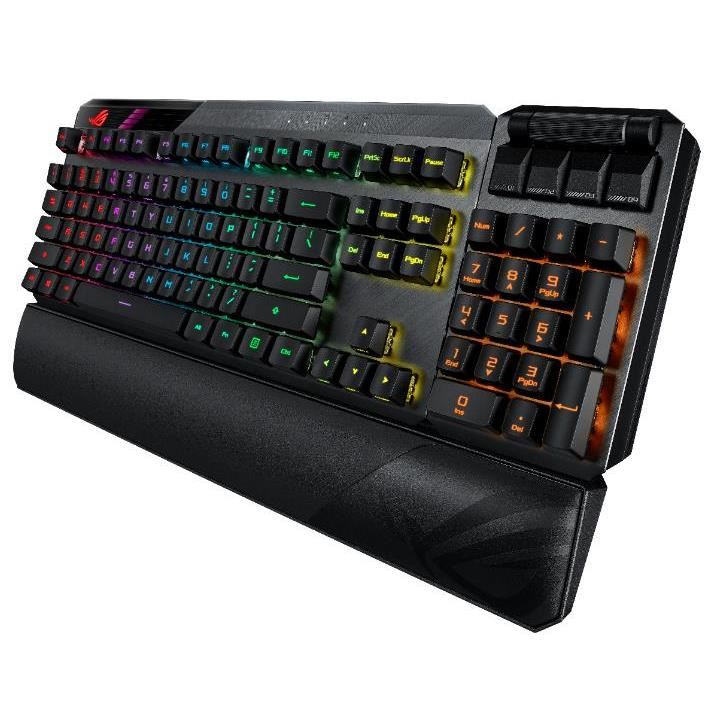 Tastatura de gaming de elită ROG Claymore II oferă o serie de caracteristici proiectate pentru a-ți oferi noi și excitante moduri de a te juca. Creează-ți aranjamentul de gaming ideal prin plasarea numpad-uui detașabil pe care parte a tastaturii dorești; apoi alege între modurile cu cablu sau wireless și iluminează totul cu Aura Sync. Iar odată ce ai întrat în luptă, asumă controlul tactic deplin cu comutatoarele opto-mecanice ROG RX și tastele rapide personalizabile.