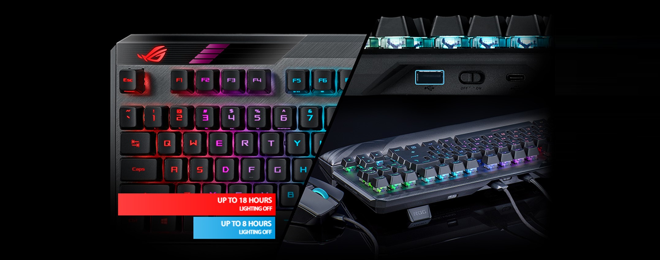 Cu iluminarea RGB Aura Sync wireless, întregul spectru de culori și o gamă de efecte de iluminare dinamice sunt a dispoziția ta. Tastele iluminate individual îți permit să creezi o tastatură unică care este cu adevărat a ta. Personalizează și iluminează în stilul tău, wireless.
