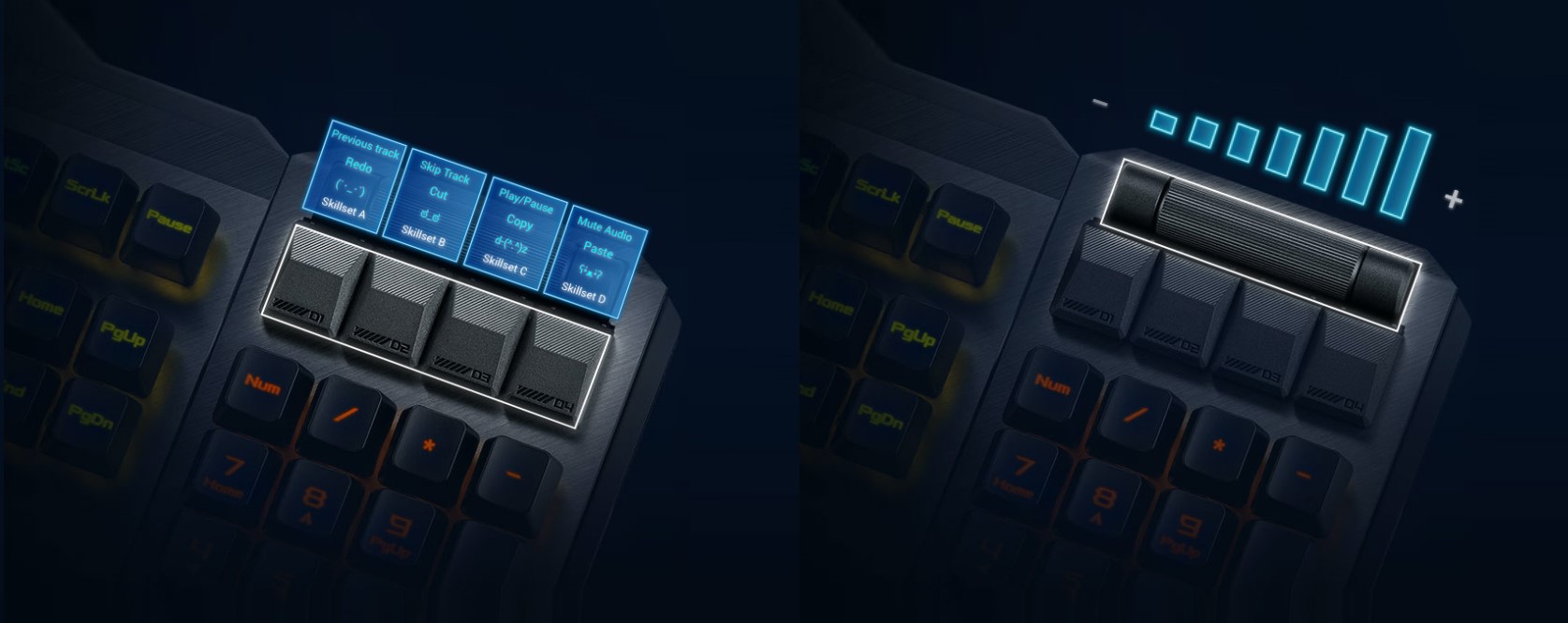 Numpad-ul detașabil include patru taste de control media care pot fi programate să devină taste rapide, pentru a oferi scurtături comode soft de productivitate sau comenzi macro în jocuri. Există chiar și un rulou încorporat pentru ajustarea rapidă a volumului.
