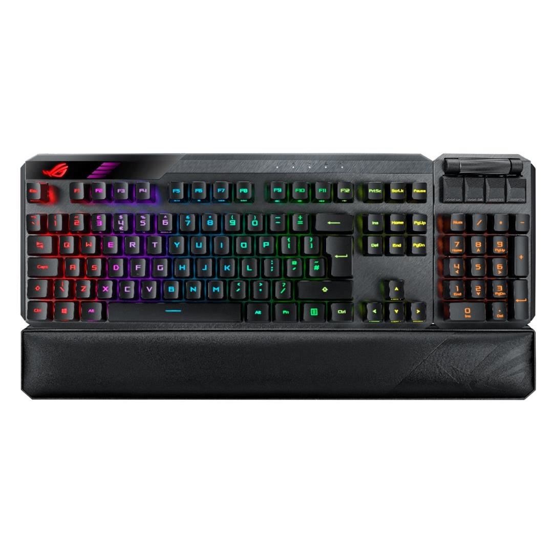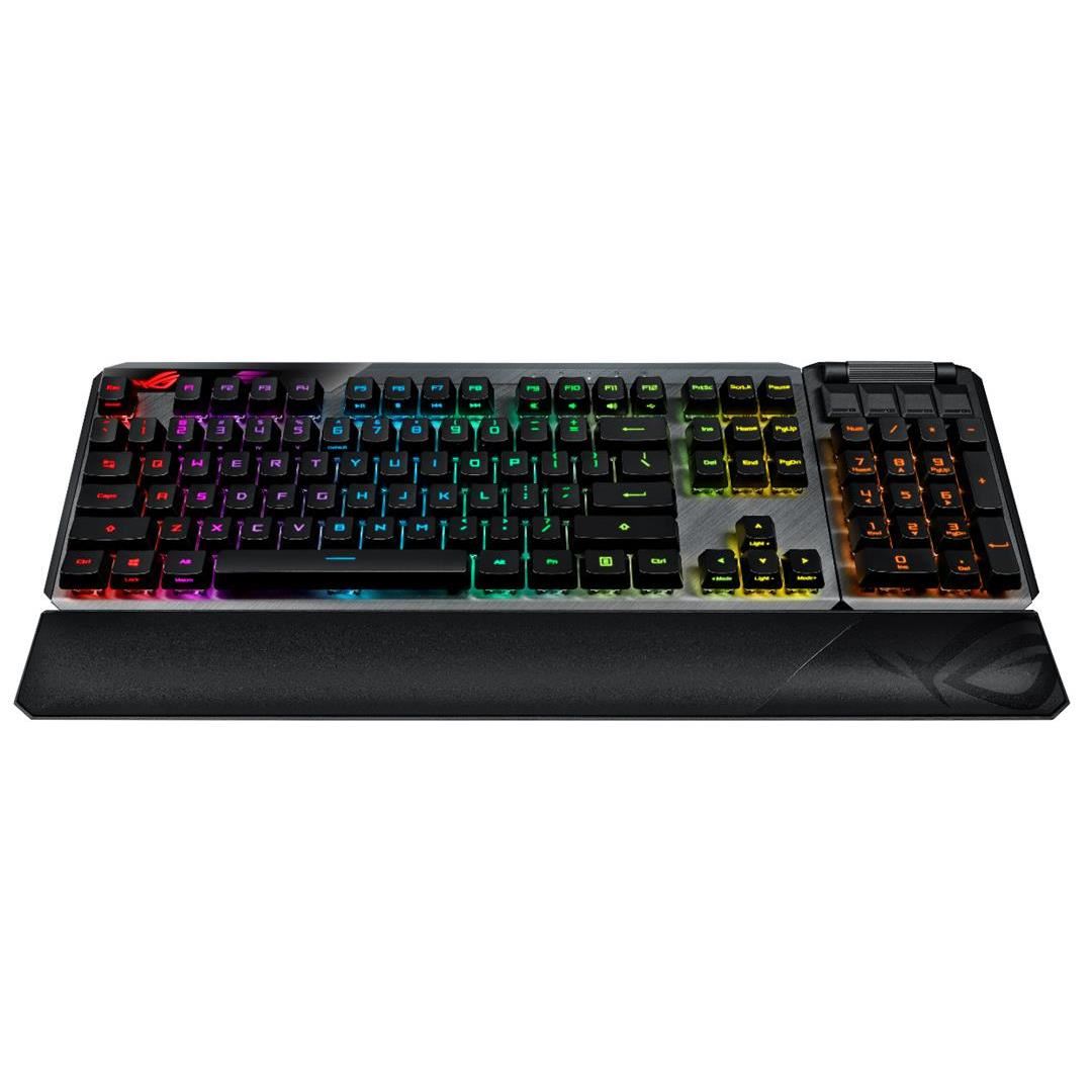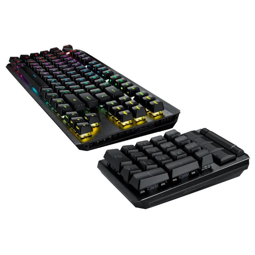 Tastatură gaming mecanică wireless ROG Claymore II, modulară TKL 80% 100%, RGB, switch-uri optico-mecanice ROG RX Red, numpad și suport ergonomic detașabile, iluminare Aura Sync