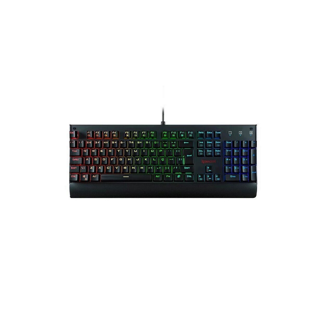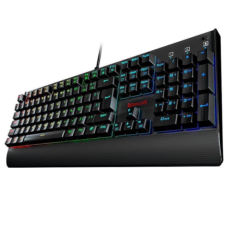 Redragon Kala Black tastatura mecanica cu switch-uri rosii, toate tastele fara conflict (n-key rollover), iluminare LED RGB a tastelor in multiple moduri, posibilitatea schimbarii culorii de iluminare a testelor in mod independent, 12 taste multimedia, tasta WIN poate fi dezactivata in timpul jocurilor, caracterele de pe taste nu se sterg datorita constructiei prin injectie dubla de plastic (double shot injection keycaps), include 8 switch-uri mecanice de schimb (diverse culori), carcasa metalica, include software pentru configurare si personalizare, conector USB placat cu aur, dimensiuni: 437.1x172.2x37.8mm