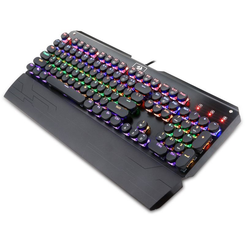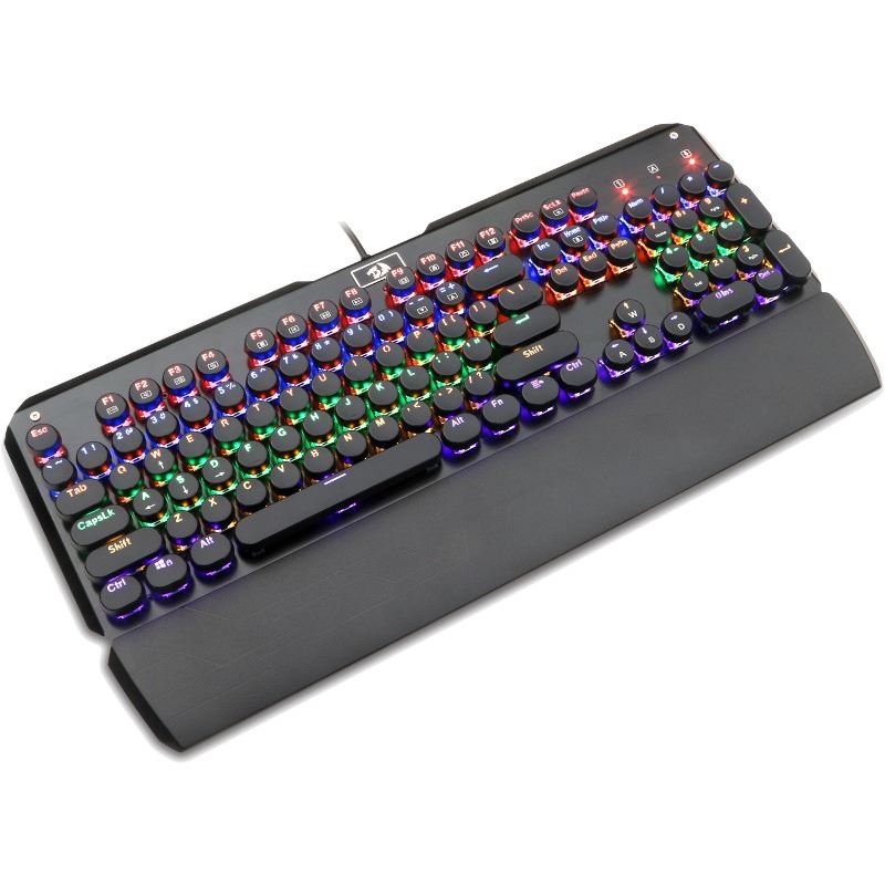 Redragon Soma Black, tastatura mecanica, durata de viata a tastelor: 50 milioane apasari, toate tastele fara conflict (n-key rollover), 12 taste multimedia, iluminare LED multicolora a tastelor (posibilitatea reglarea intensitatii luminoase), design premium cu carcasa construita din aluminiu, 12 taste multimedia, tasta WIN poate fi dezactivata in timpul jocurilor, caracterele de pe taste nu se sterg datorita constructiei prin injectie dubla de plastic (double shot injection keycaps), include suport pentru incheieturi detasabil, conector USB placat cu aur, dimensiuni: 447.5x217x39.3mm, USB