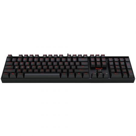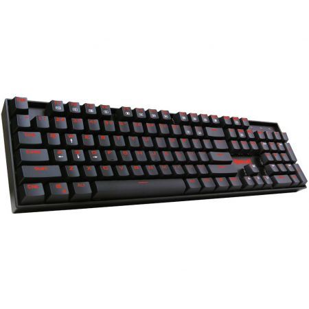 Redragon Vara Black, tastatura mecanica, toate tastele fara conflict (n-key rollover), iluminare LED rosie a tastelor (reglarea intensitatii, efecte breathing), 12 taste multimedia, tasta WIN poate fi dezactivata in timpul jocurilor, conector USB placat cu aur, USB