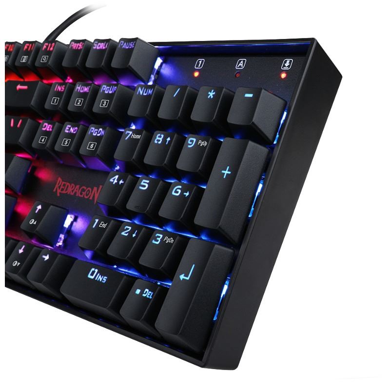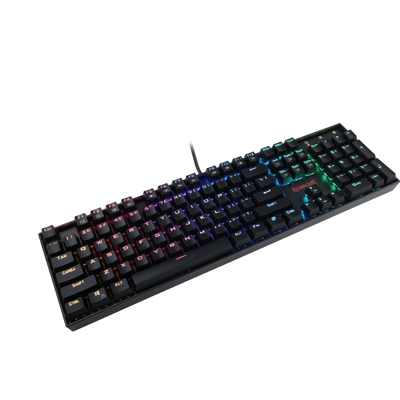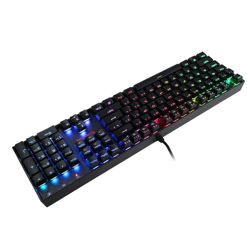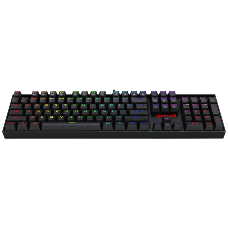 Redragon Vara RGB Black, tastatura mecanica, toate tastele fara conflict (n-key rollover), iluminare LED RGB a tastelor (7 culori disponibile, 6 moduri de iluminare, reglarea intensitatii), 12 taste multimedia, tasta WIN poate fi dezactivata in timpul jocurilor, conector USB placat cu aur, USB