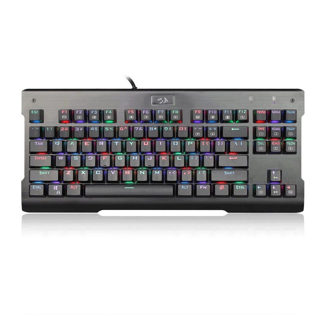 Redragon Visnu RGB, tastatura mecanica, toate tastele fara conflict - 87 taste (n-key rollover), iluminare LED RGB a tastelor (12 culori disponibile, 6 moduri de iluminare, reglarea intensitatii), 12 taste multimedia, tasta WIN poate fi dezactivata in timpul jocurilor, conector USB placat cu aur, USB