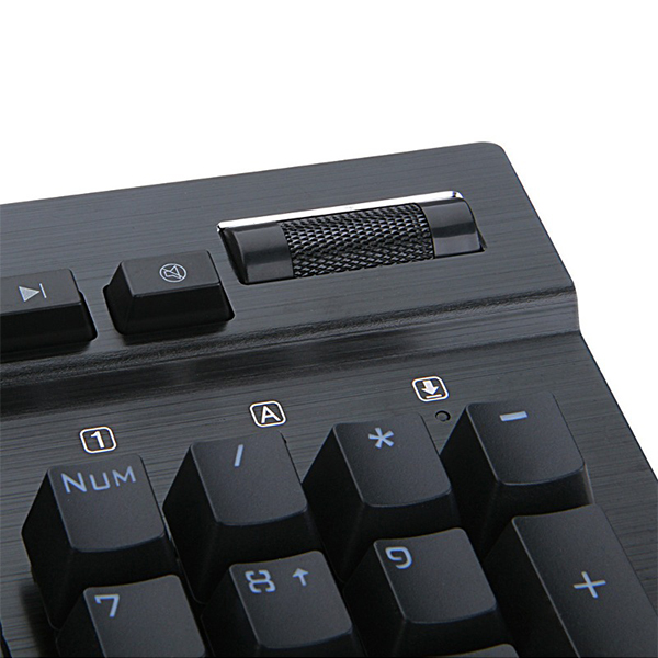 Posibilitatea iluminarii numai anumitor taste – 3 profile de iluminare), 6 taste multimedia, 12 butoane programabile, functie de inregistrare a macro-urilor, 2 viteze de input a tastelor, tasta WIN poate fi dezactivata in timpul jocurilor, conector USB placat cu aur, hub USB pe tastatura.