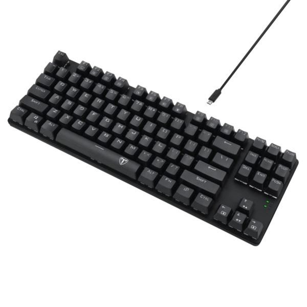 Tastatura mecanica T-Dagger Bora iluminare Ice Blue, toate tastele fara conflict (n-key rollover), switch-uri rosii ET-7, iluminare LED Ice Blue, 6 taste multimedia, tasta WIN poate fi dezactivata in timpul jocurilor, taste durabile (double shot inject), conector USB