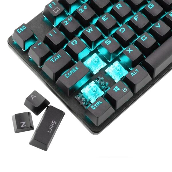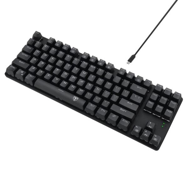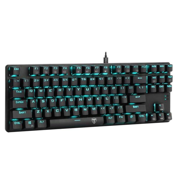 Tastatura mecanica T-Dagger Bora V2 iluminare Ice Blue switch-uri albastre, toate tastele fara conflict (n-key rollover), switch-uri albastre ET, iluminare LED Ice Blue, 6 taste multimedia, tasta WIN poate fi dezactivata in timpul jocurilor, taste durabile (double shot inject), conector USB